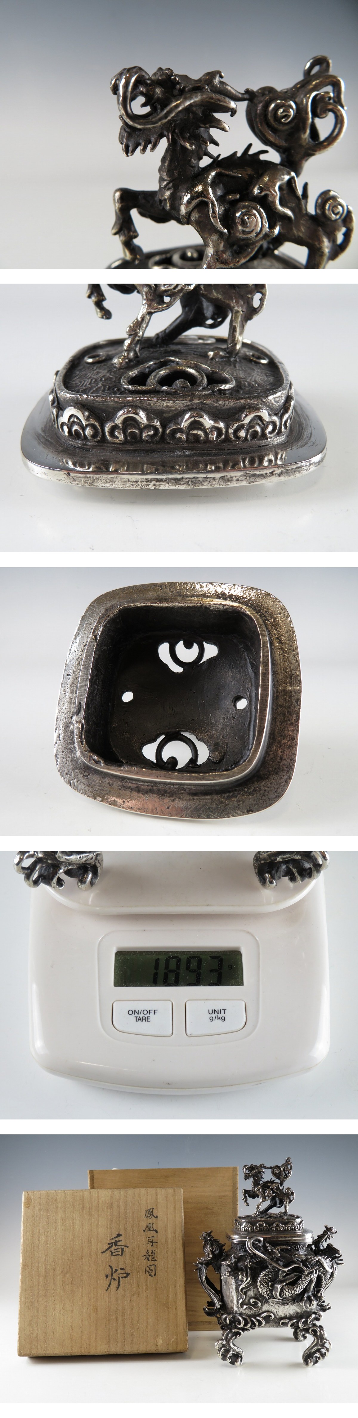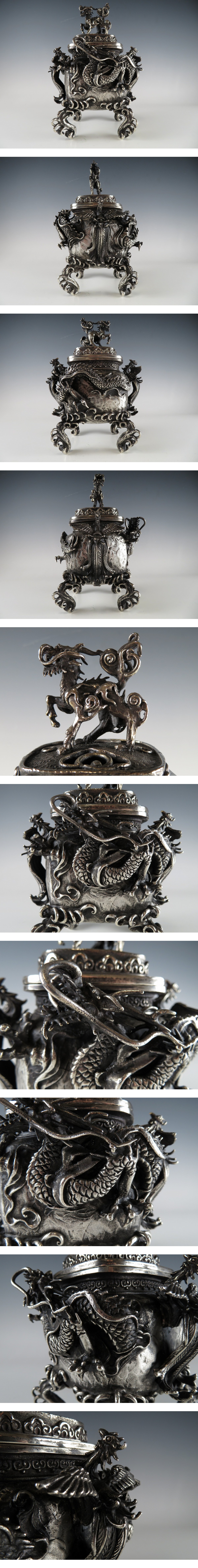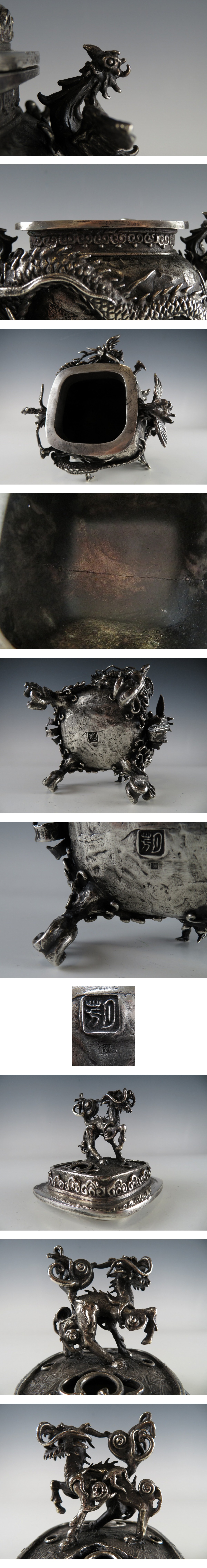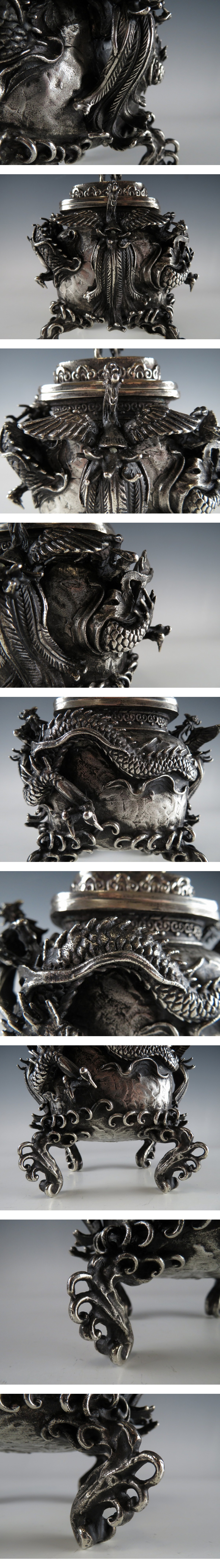 | ☆ 仏教美術 銀刻印 須賀 月芳 高肉 鳳凰耳付 龍紋 香炉 約 1.8 kg になります。