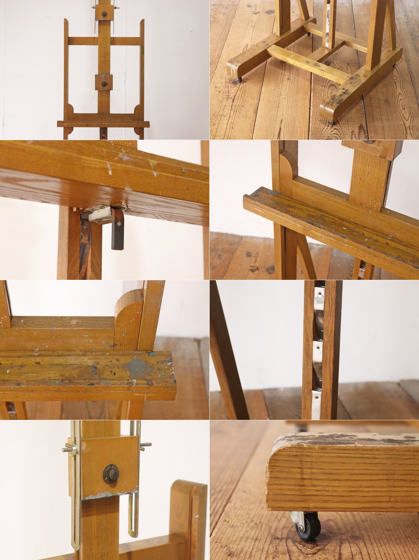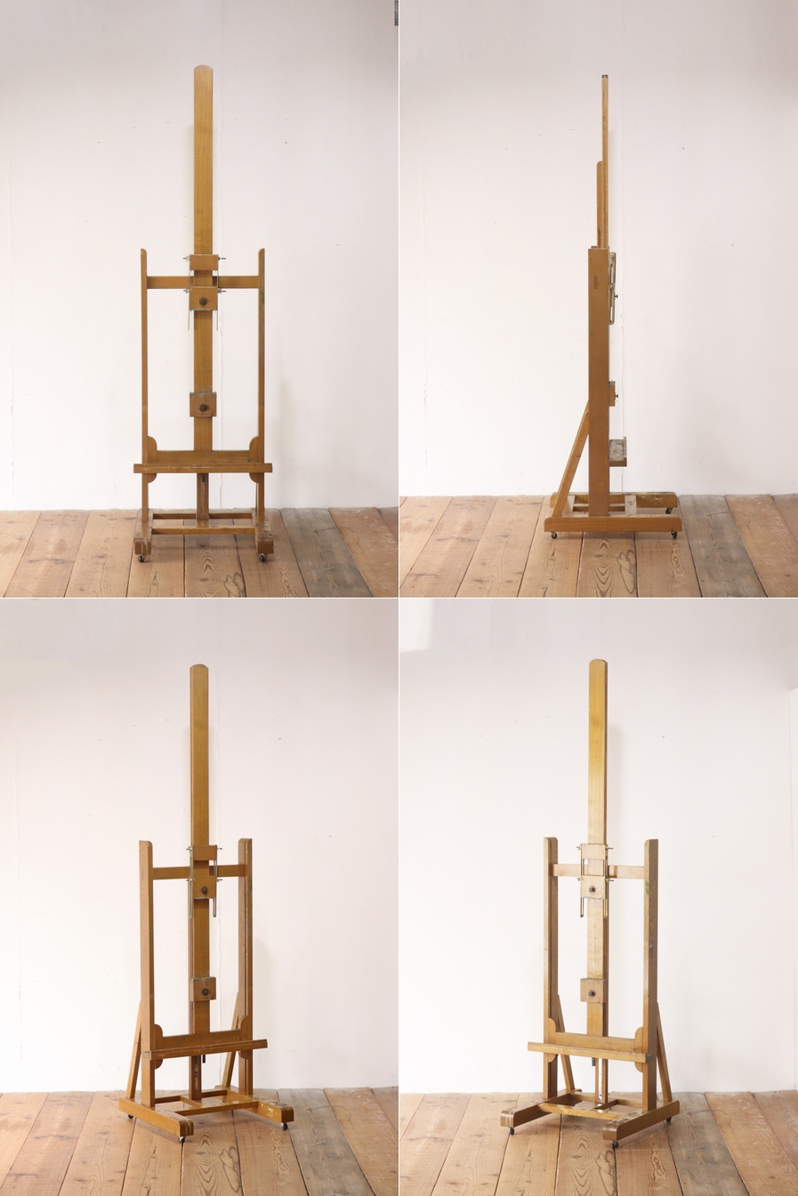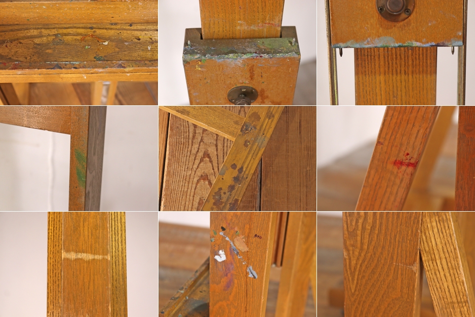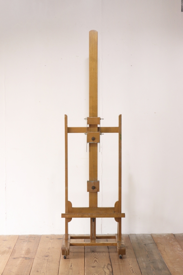 ヴィンテージ 大型 イーゼル 看板立て キャスター 昇降 画架 ディスプレイ 木製 店舗什器/U.S.アンティーク英国/RBT10102 收藏