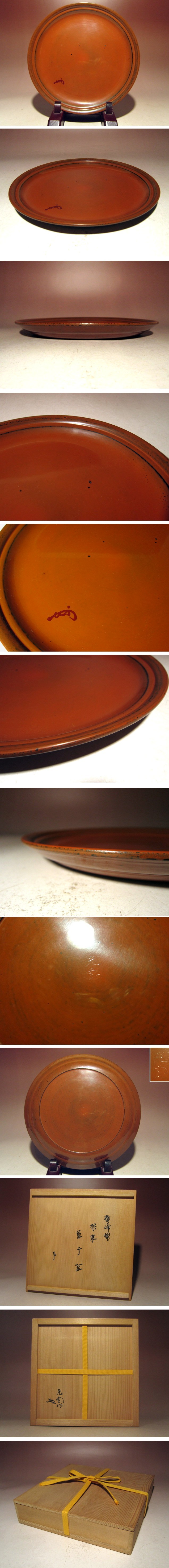 ※即決※ 山下光雪 鷹峰製 根来菓子盆★表千家即中斎割花押★u923 收藏