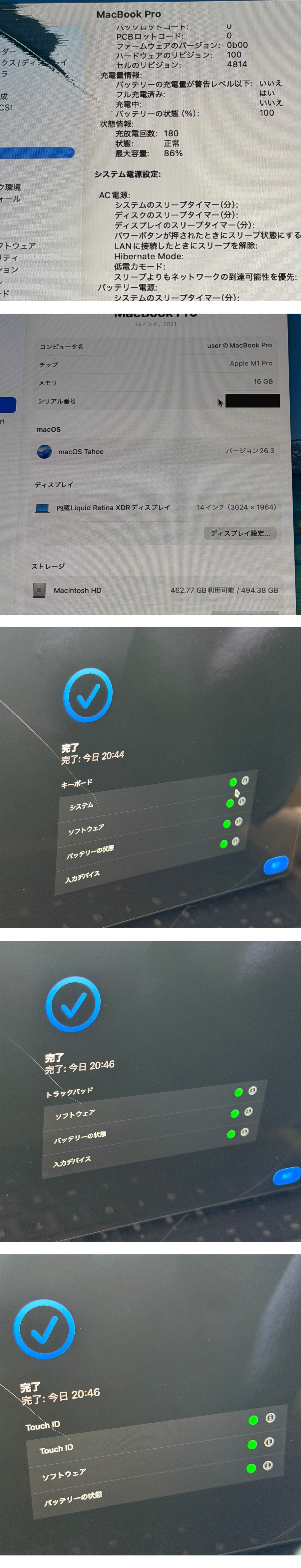 M1Pro 14インチ MacBook Pro ジャンク画面割れ 16GB/512GB 收藏