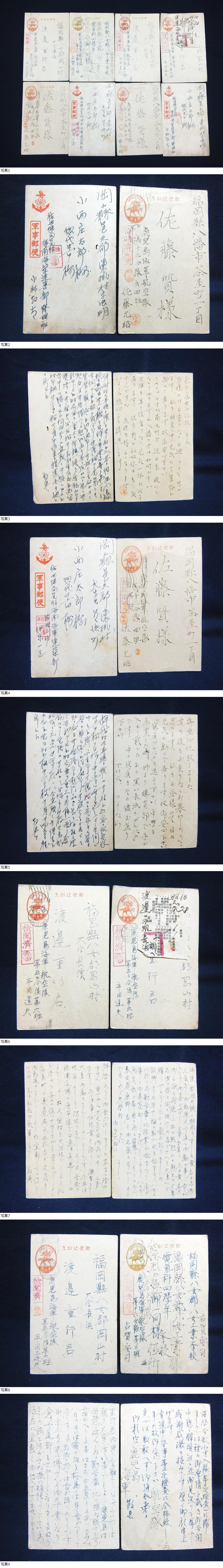 戦前「軍事郵便 鹿児島海軍航空隊ほか~国内へ いろいろまとめて8通」はがき 消印 收藏
