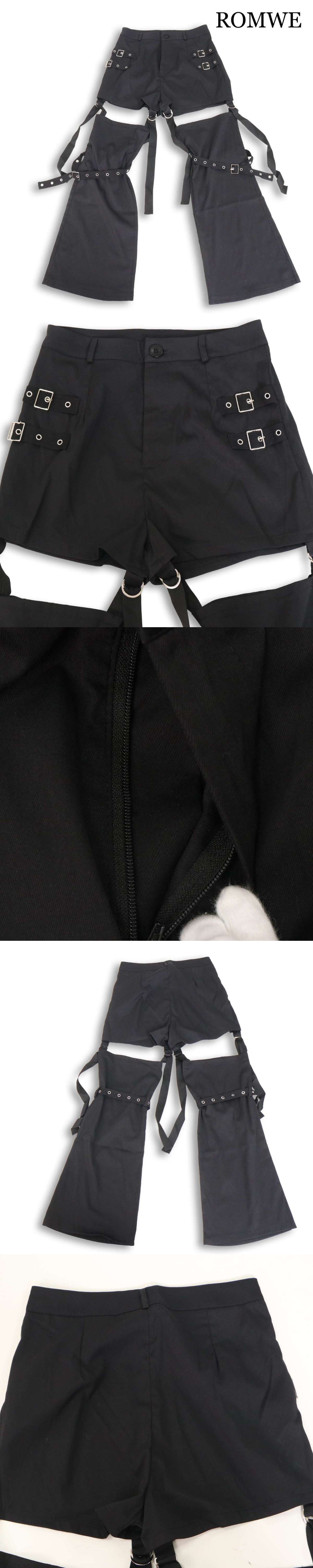 【新品 未使用】 ROMWE ロムウェ 通年 カットアウト グロメット アイレット バックル ディテール パンツ Sz.S レディース 黒 收藏