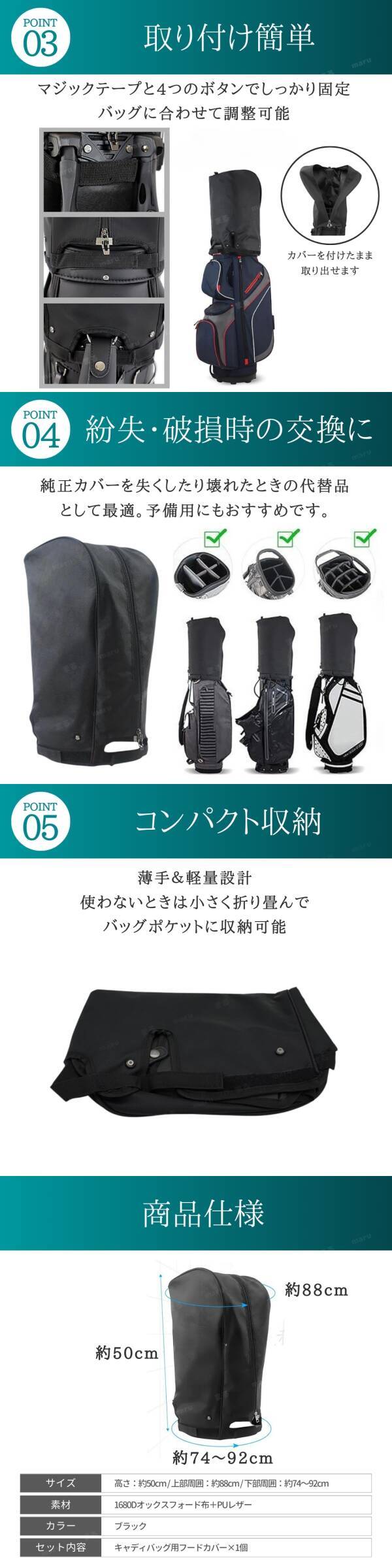 キャディバッグ フードカバー フリーサイズ 8.5 9 9.5型 対応 ゴルフバッグ 防水 防塵 汎用 交換 予備 サイズ調整可能 メンズ レディース 收藏