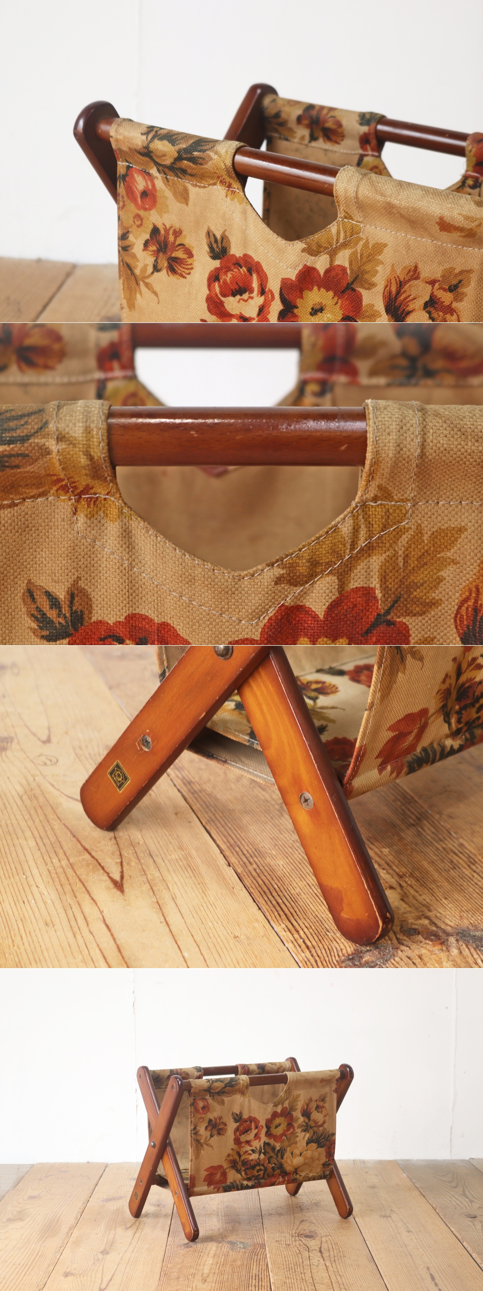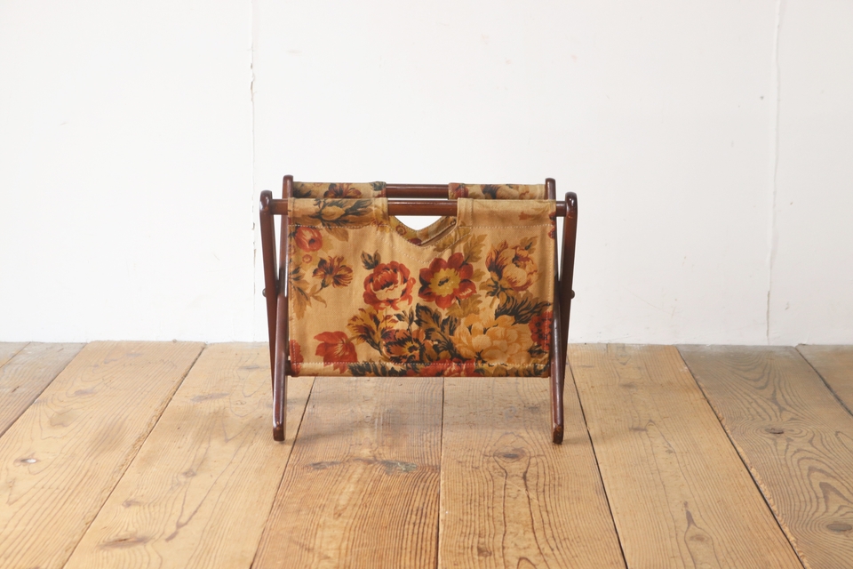 レトロ マガジンラック 収納 雑誌 花柄 ファブリック ヴィンテージ/昭和古道具アンティーク英国/LKT22212 收藏