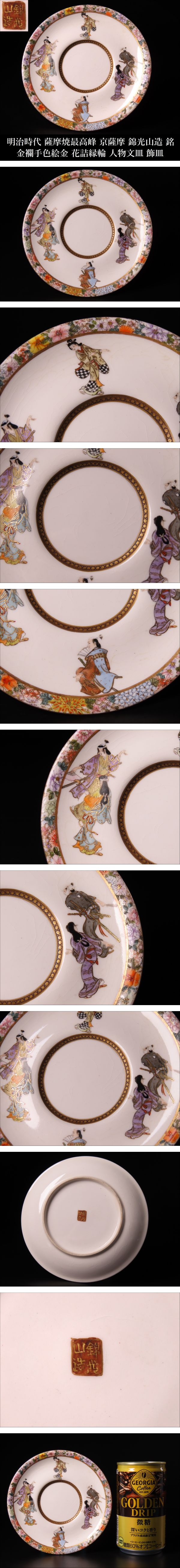 【ONE'S】明治時代 薩摩焼最高峰 京薩摩 錦光山造 銘 金襴手色絵金彩 花詰縁輪 人物文皿 飾皿 ソーサー 受皿 古美術品 | |||