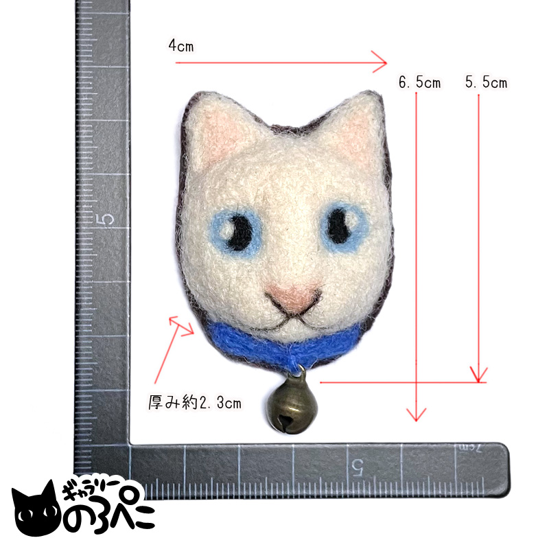 白猫ちゃんのお顔ブローチ(羊毛フェルトの猫ちゃんのお顔ブローチ・青い首輪の白猫ちゃん) bc795-8 收藏