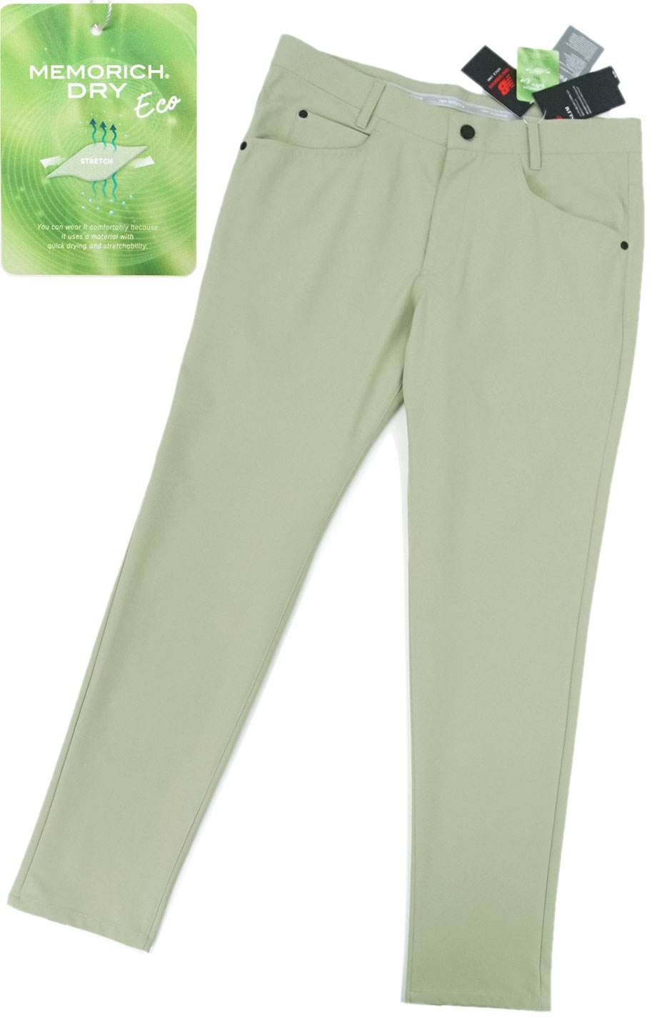 ●春夏~秋までスリーシーズン対応。吸汗速乾性に優れたサラリとした肌触りの春夏のラインナップですが厚すぎず薄すぎず、しっかりとした素材感。ゴルフパンツとしては季節をあまり気にせずシーズンを通してご活用いただけます。生地はやや薄手でもしっかりとした強度も感じさせてくれます。