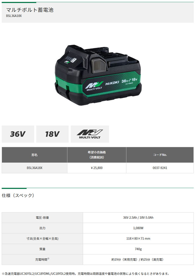 | 商品名 | 36V/18Vマルチボルト蓄電池 | |