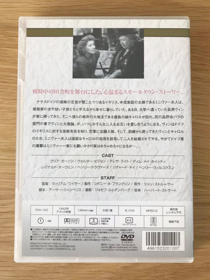 名作映画DVD 「MRS.MINIVER ミニヴァー夫人」