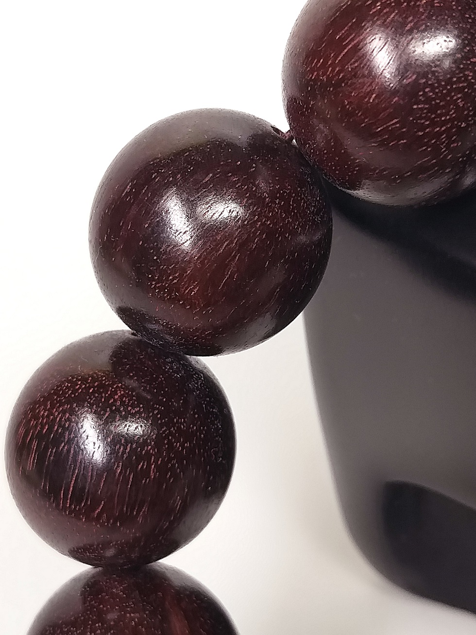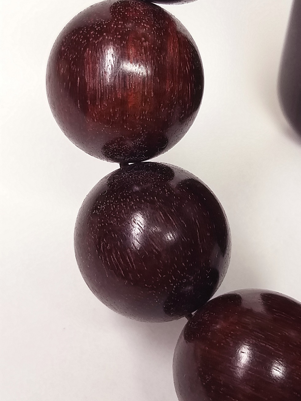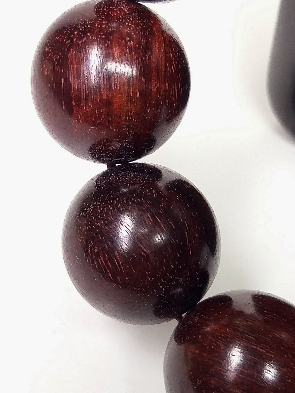 現在出品の腕輪念珠に使用の天然最高級極珍品特大粒インド野生小葉金星紫檀の玉の特徴は:①使用されている原材は、収蔵遺留された古材です。油性が、非常に良質です。②天然最高級極珍品特野生小葉金星紫檀木原材で、密度が最も高く、硬度が高く、成長速度が非常に遅くです。石のように硬いです。③色合いが、最極上の濃くて深み純正な黒味の赤茶色です。④重厚感が充分あります。水に入れると沈んでしまいます。⑤樹実の紋理は、非常に綺麗です。⑥この腕輪念珠は玉全部で1粒になっており、色に差はありません。⑦加工品質は、最高級です。珠の形状は、まん丸でとても規則的です。状態は欠陥等も無くほとんど完全な品です!