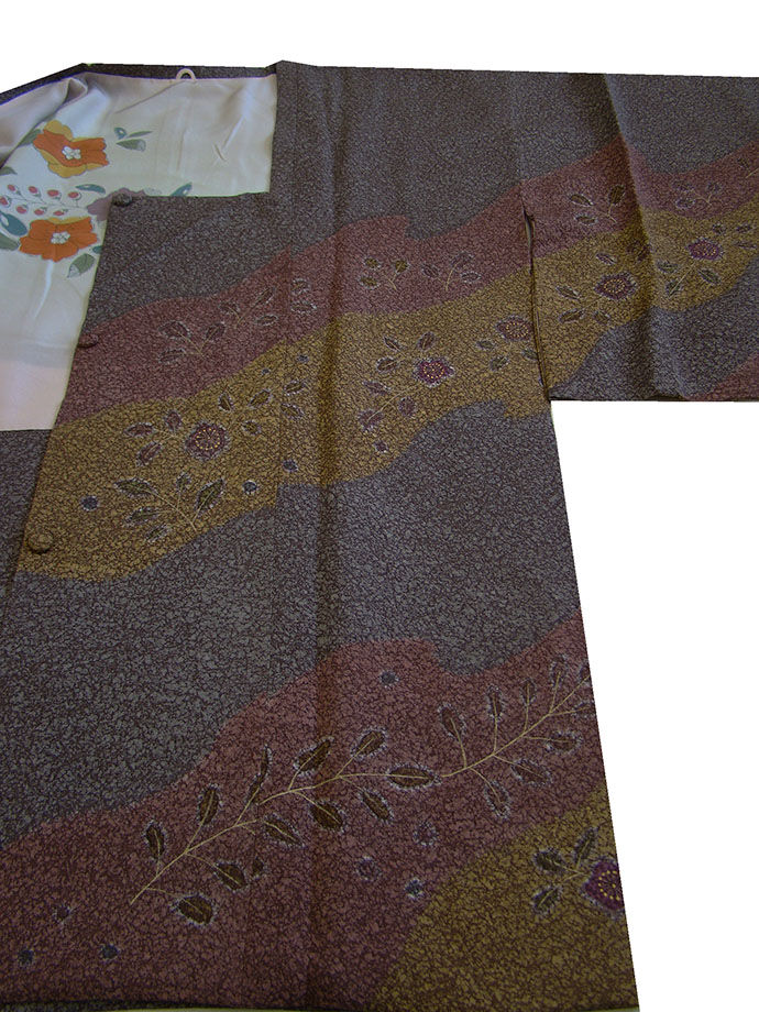 ※素敵な縮緬地の道行コートです。 ワンランク上のコートをはおり 周りに差をつけお洒落心を擽る趣向を凝らした完好なお品です!! いつの時期も大事な帯や着物を守る為にも、外出の折にはコートは身に付けたいものです。 40代~70代迄幅広く着用出来ます。 身長155cm~163cmの貴女に最適!! |