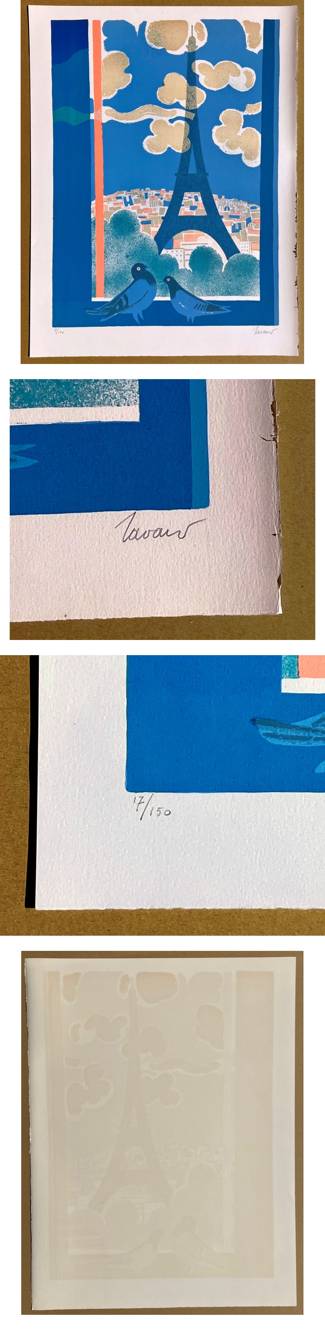 ★ アルバート・ザバロ Albert Zavaro ◆ 鳩とエッフェル塔 ◆ リトグラフ ◆ 直筆サイン入り ◆ 1973年 ◆ シート ♪ 激レア 收藏