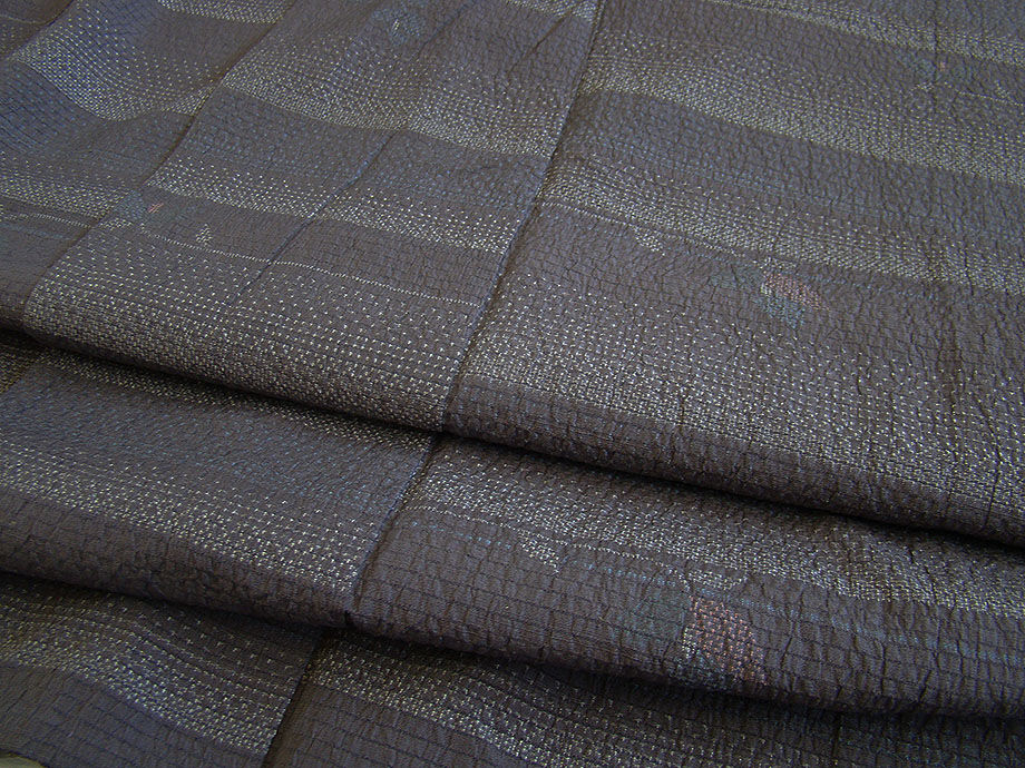 店舗改装セール!美品!裄62.9cm S寸 単衣 着物通 フクレ織 紬着尺 正絹 仕立上り 146cm~152cm TT862 收藏