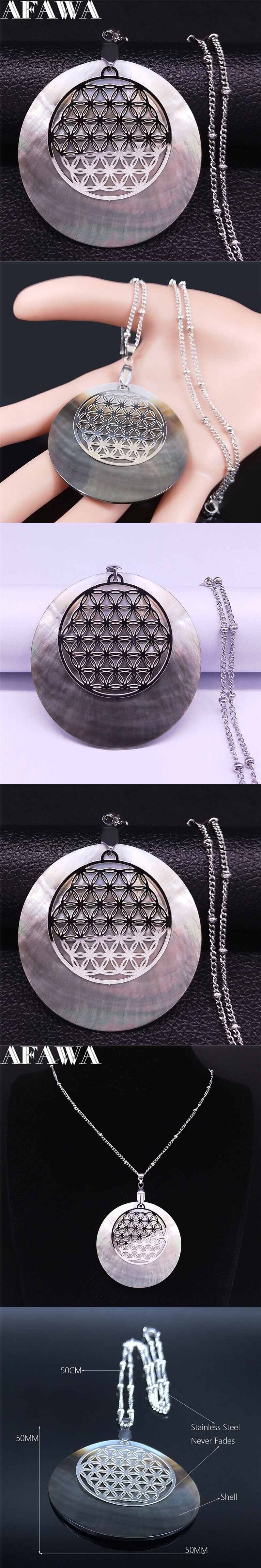 ネックレス 花 フラワー ステンレス シルバー シェル レディース 女性 ライフ スチール 貝殻 チャーム カラー 大 ボヘミア ジュエリー 襟 收藏
