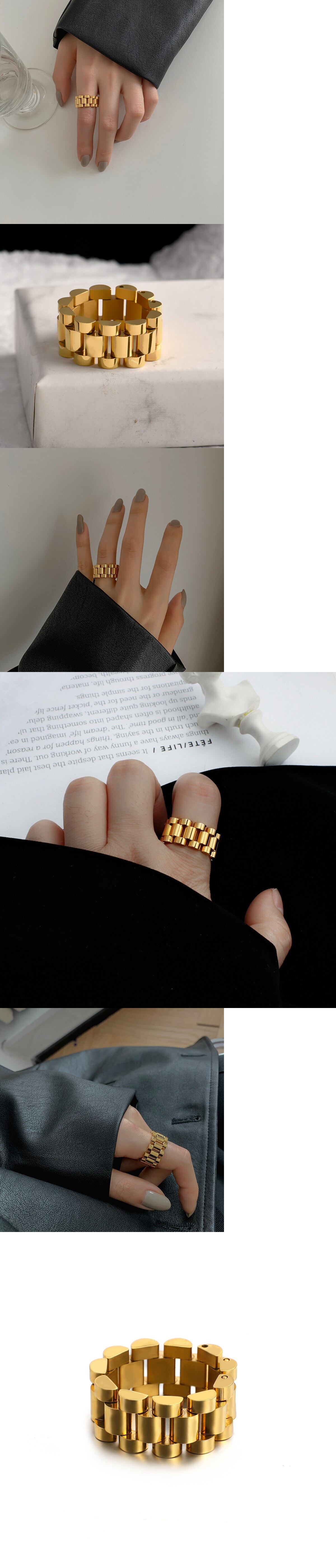 指輪 リング ステンレス ゴールド チェーン レディース 女性 新しい 厚い 分厚い ツイスト リンク カラー スチール スタイリッシュ 收藏