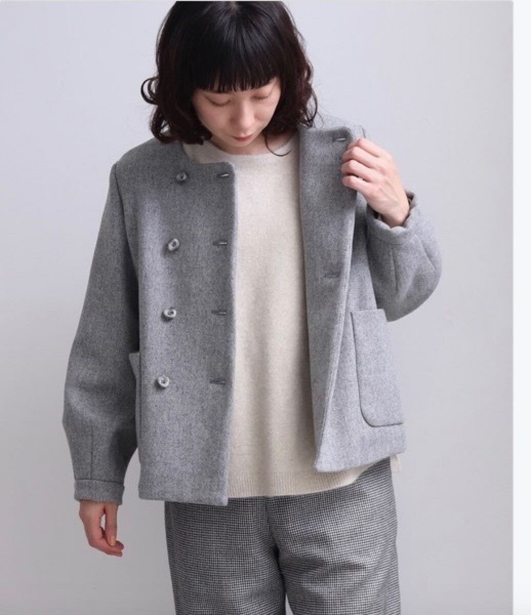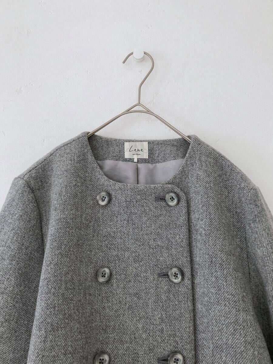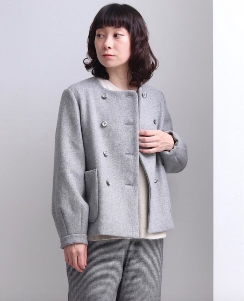 とても美品 Lene レネ カシミヤ混 メルトン ダブルボタン ノーカラー ジャケット ショート コート 收藏
