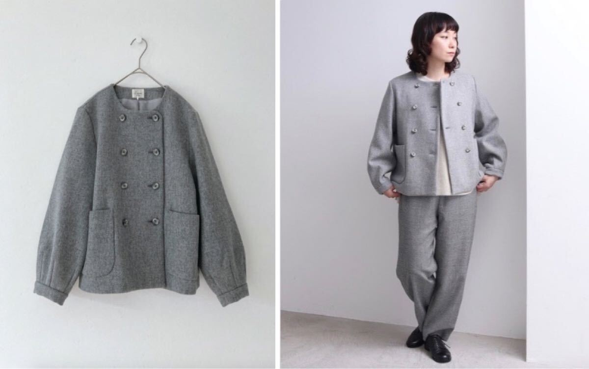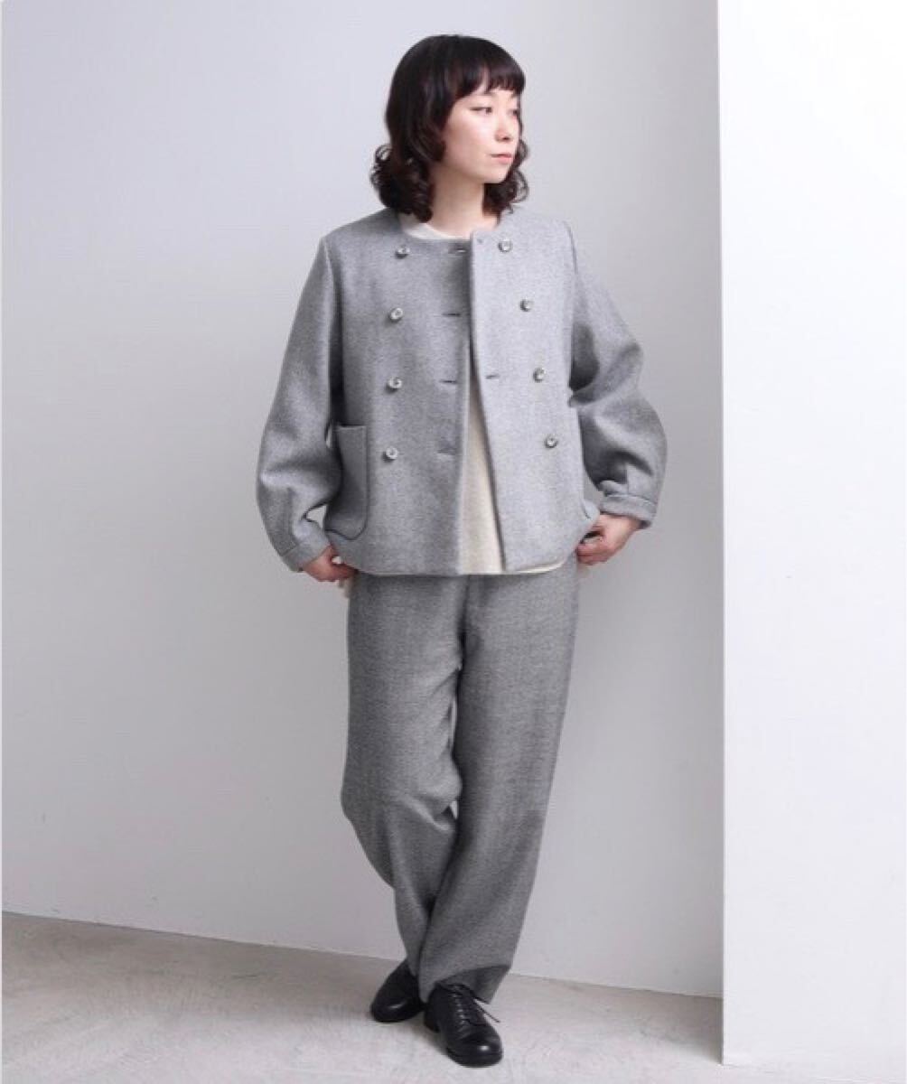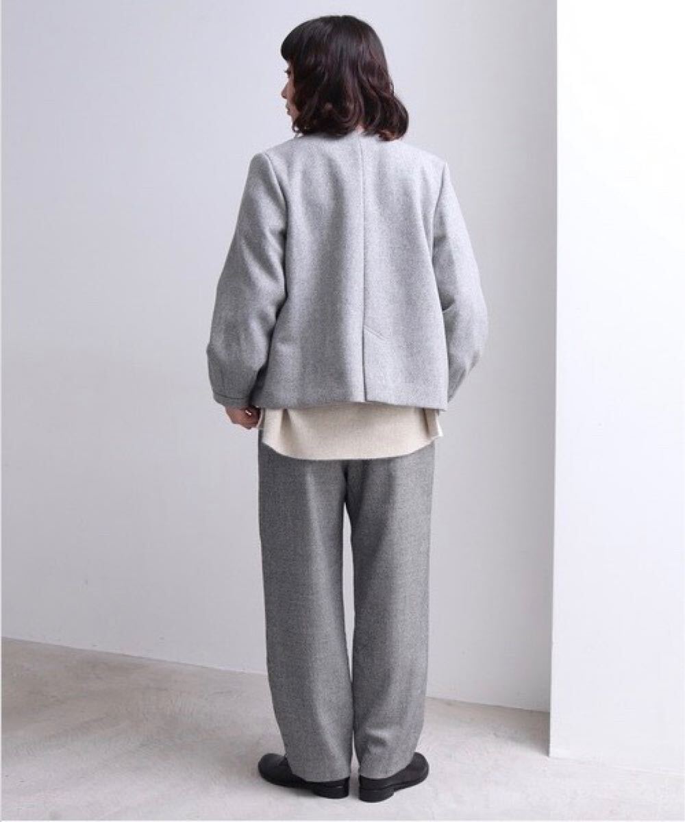 とても美品 Lene レネ カシミヤ混 メルトン ダブルボタン ノーカラー ジャケット ショート コート 收藏