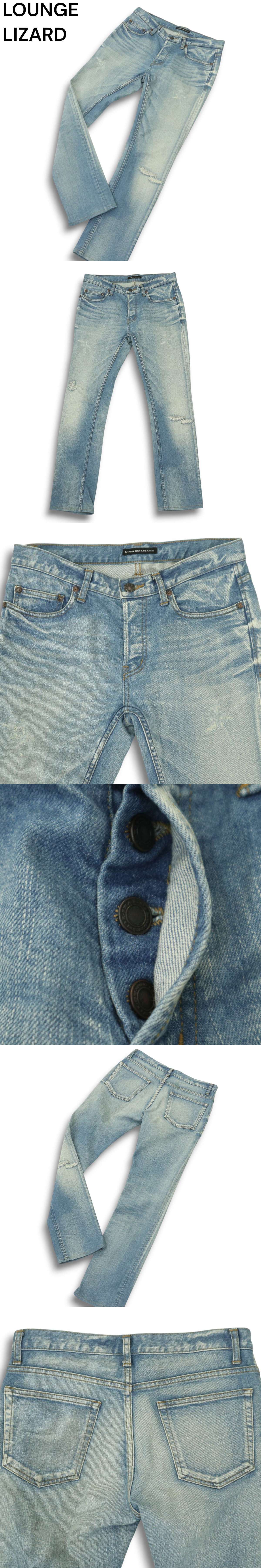 LOUNGE LIZARD ラウンジリザード ダメージ&リペア加工★ ストレッチ スリム デニム パンツ ジーンズ Sz.1 メンズ 日本製 A4B06084_C#R 收藏