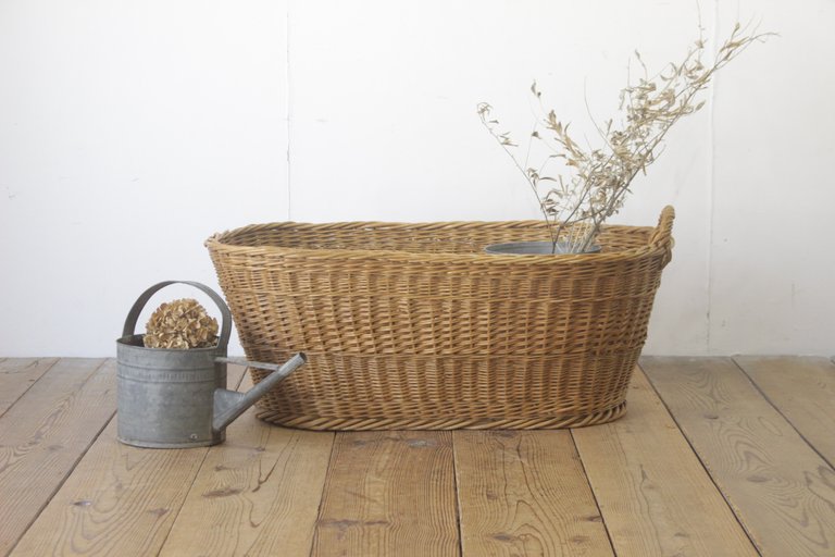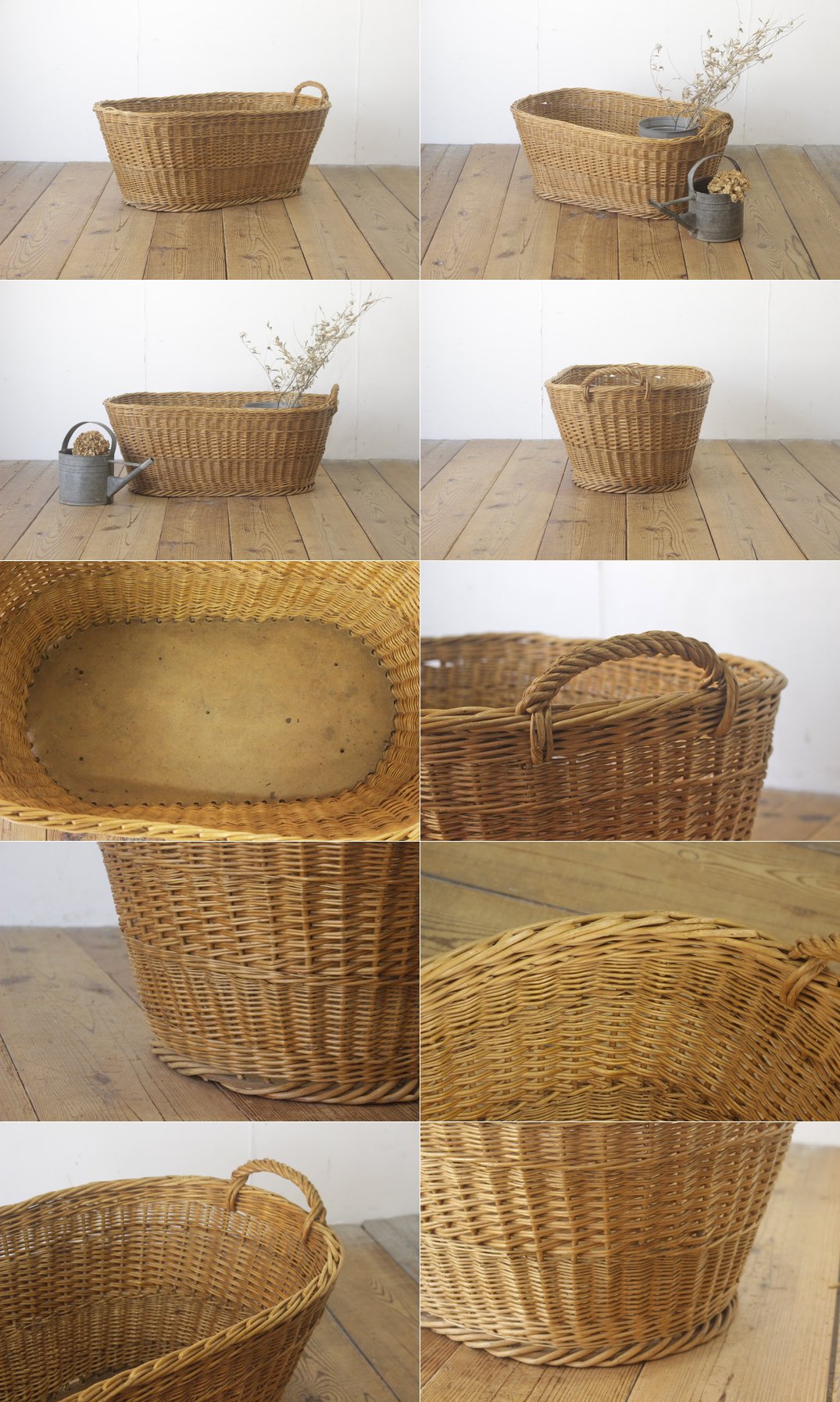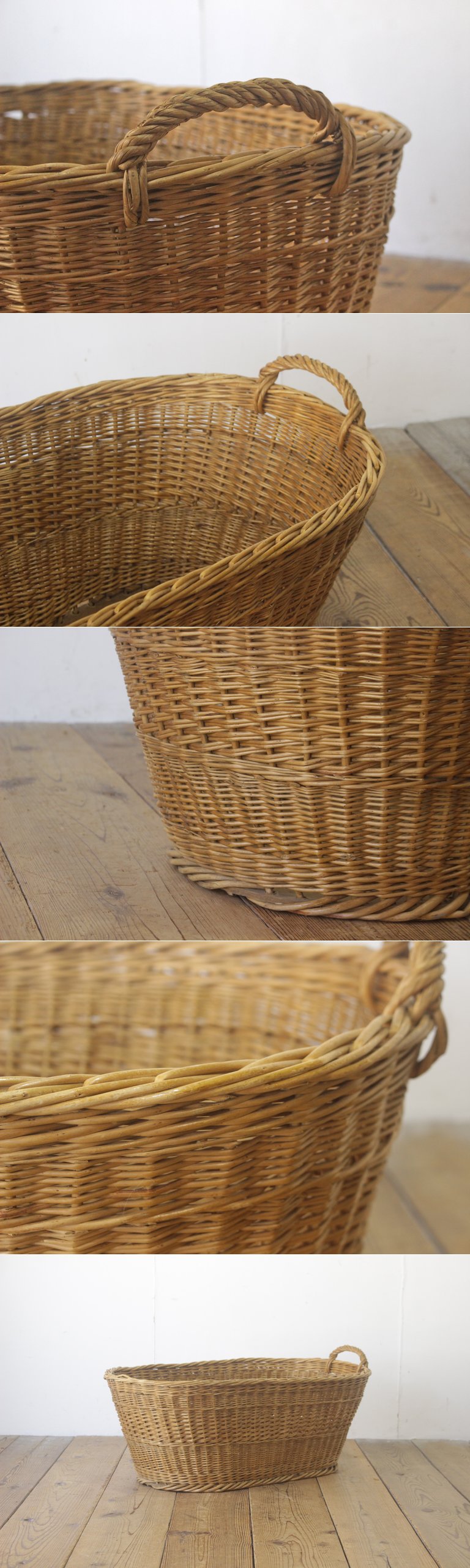 ヴィンテージ 大型 オーバルバスケット ラタン 籐家具 大きめ 脱衣籠 みみ付き ラック ランドリー 収納/アンティーク英国北欧/OHK01058 收藏