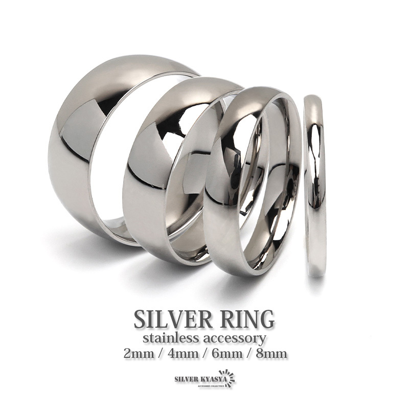(4mm幅、9号) シルバーリング シンプルリング ステンレスリング メンズ レディース 銀色 指輪 甲丸 金属アレルギー対応 收藏