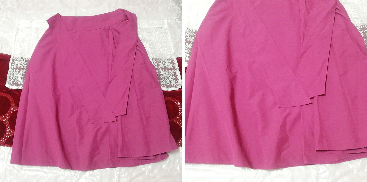 マゼンタピンク腰ひもミディアムスカート Magenta pink waist string midi skirt