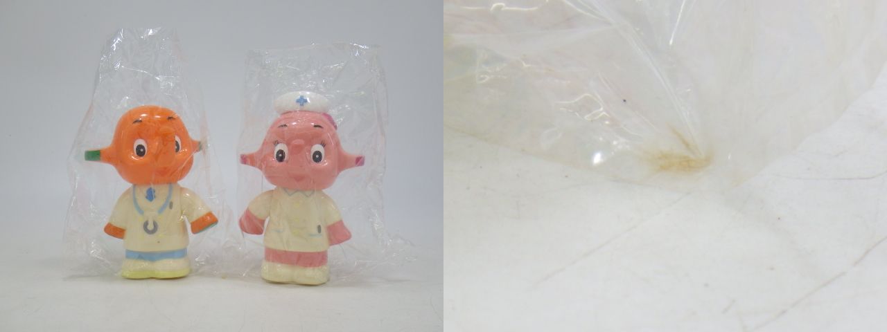 | ★商品説明★ | ※下記、【商品詳細】及び【落札後のご案内・注意事項・備考】欄をお読みいただき、ご理解頂いた上でご入札頂けますようお願い致します。 ![]() ![]() 《商品詳細 》 ◆佐藤製薬 ドクターサトちゃん&ナースサトコちゃん 貯金箱 コインバンク 非売品を出品致します。 ◆ドクター サトちゃん 高さ:約13.5cm *素人採寸の為、多少の誤差はご容赦ください。 ◆ナース サトコちゃん 高さ:約15cm ◆袋(ナイロン)入り 《商品状態 》 ◆保存袋(ナイロン袋)に入ったまま未使用で保管されていましたが、経年保管に伴う日焼け・しみ等がございます。 ◆袋(ナイロン)/シワや汚れがございます。 [ ※商品についての注意事項 ] ◆ いずれも画像を良くご確認頂き、ご自身の判断で納得されたうえで入札をお願い致します。 ◆ 画像につきましてはデジカメ撮影の為、実際の色合いと異なる事もありますのでご了承ください。 | |