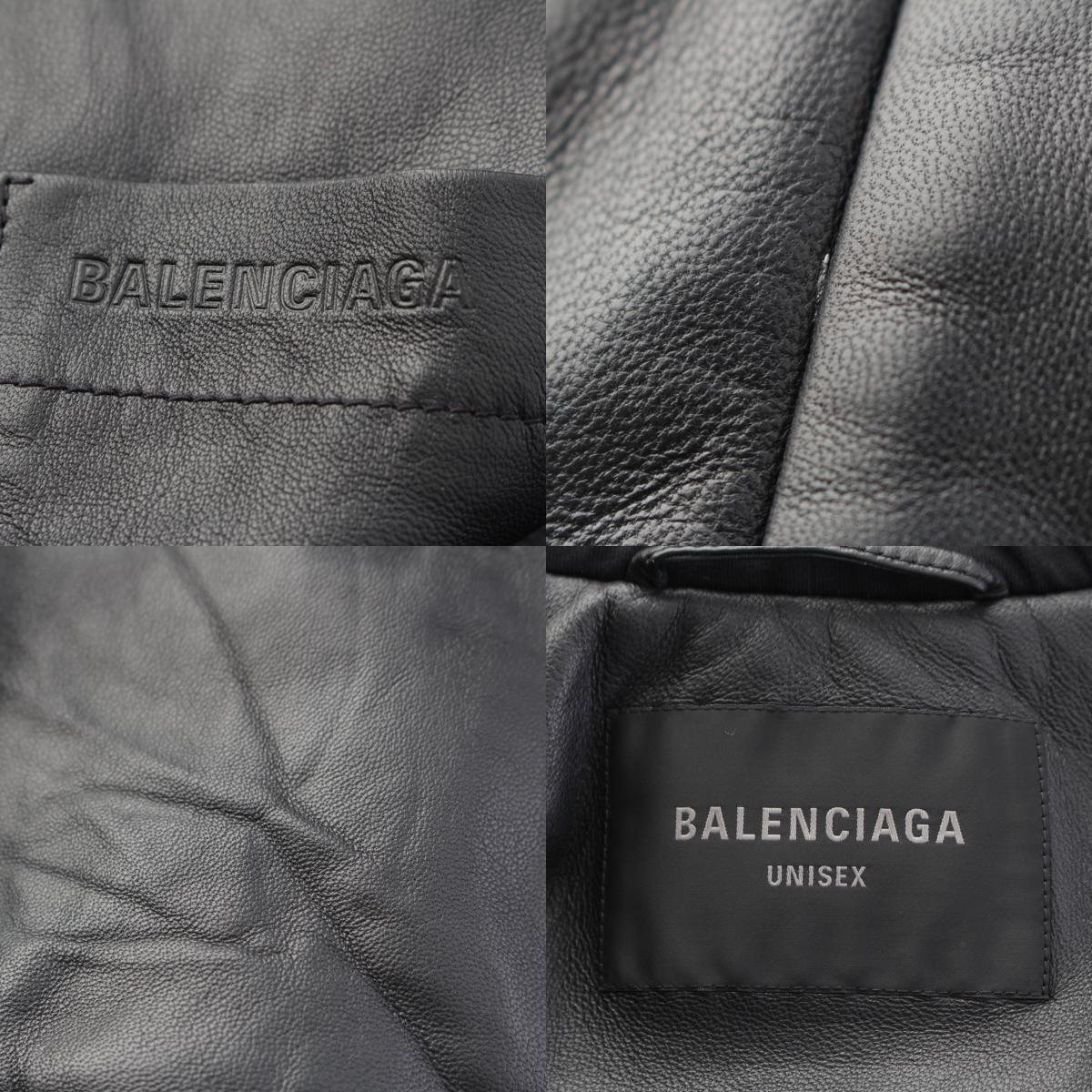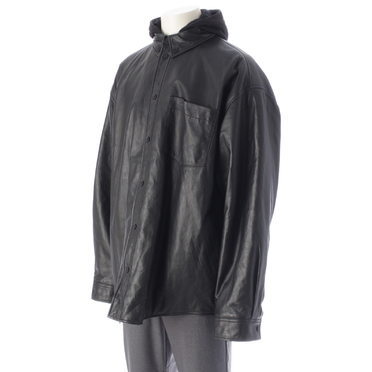 バレンシアガ ソフトラムスキン ロゴ レザー フード ジップ ジャケット 805368 ブラック L【中古】 收藏