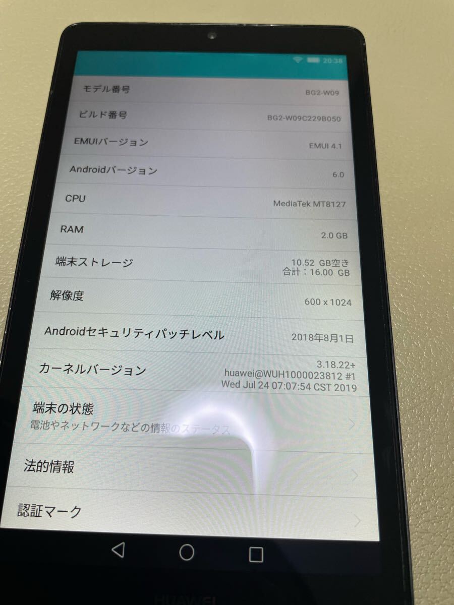 huawei BG2-W09 MediaPad T3 Wi-Fiモデル 現状品Y1297 收藏