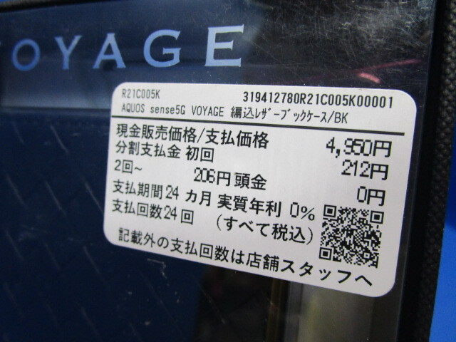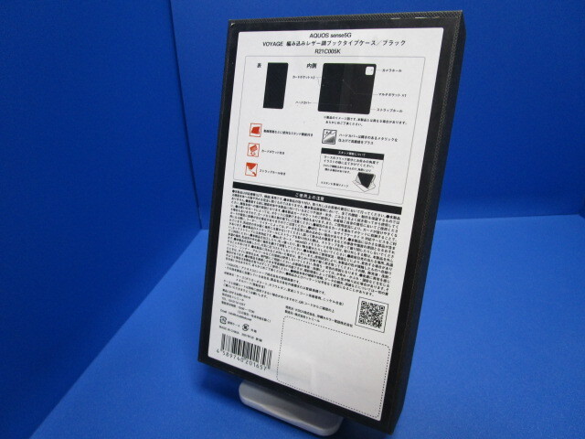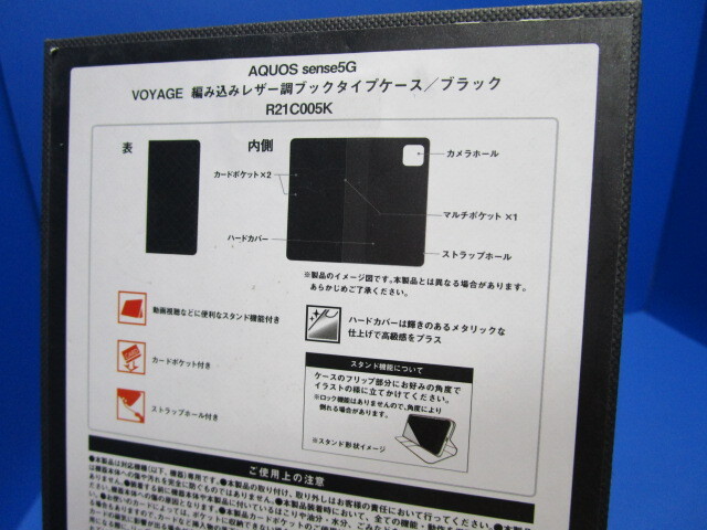 au +1 collection VOYAGE ボヤージュ AQUOS sense 5G 編み込みレザー調 手帳型 ブックタイプケース ブラック R21C005K 收藏