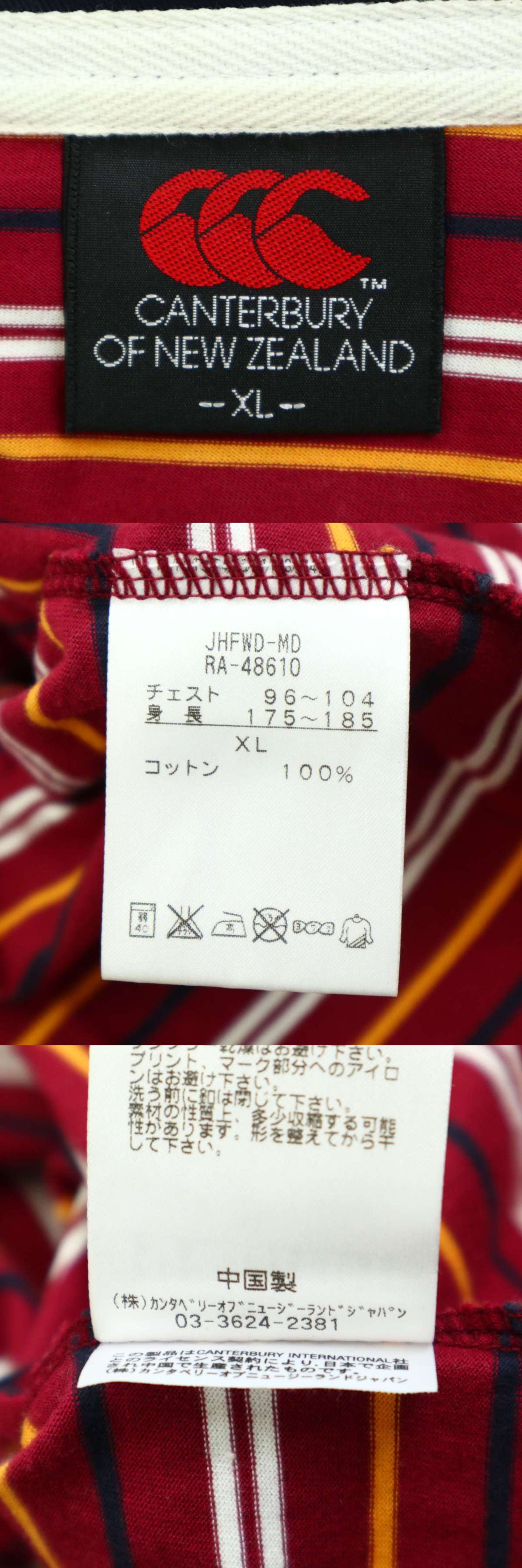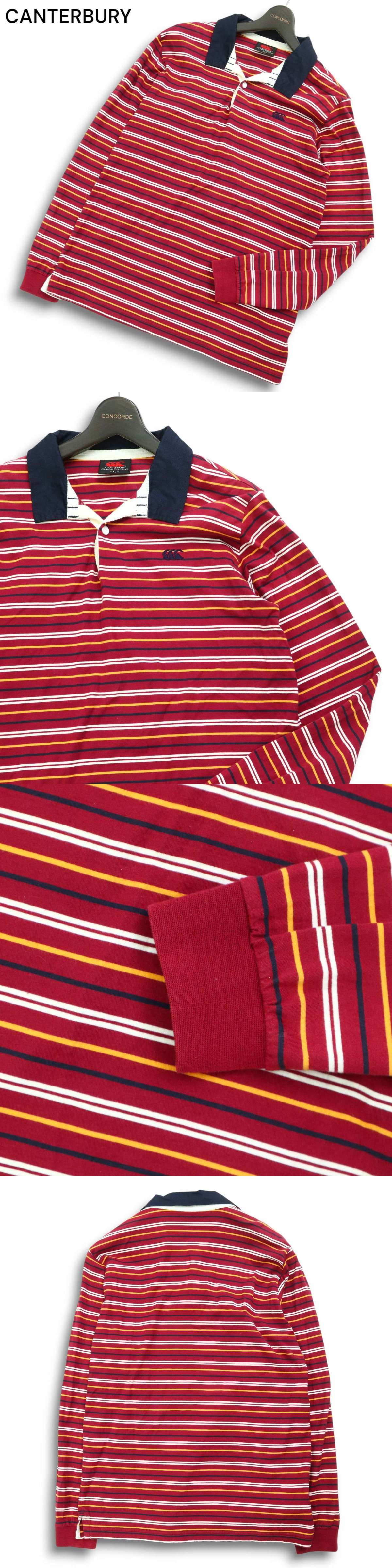 CANTERBURY カンタベリー ラグビー ロゴ刺繍★ ボーダー 長袖 ラガー シャツ ポロシャツ Sz.XL メンズ 大きいサイズ 收藏