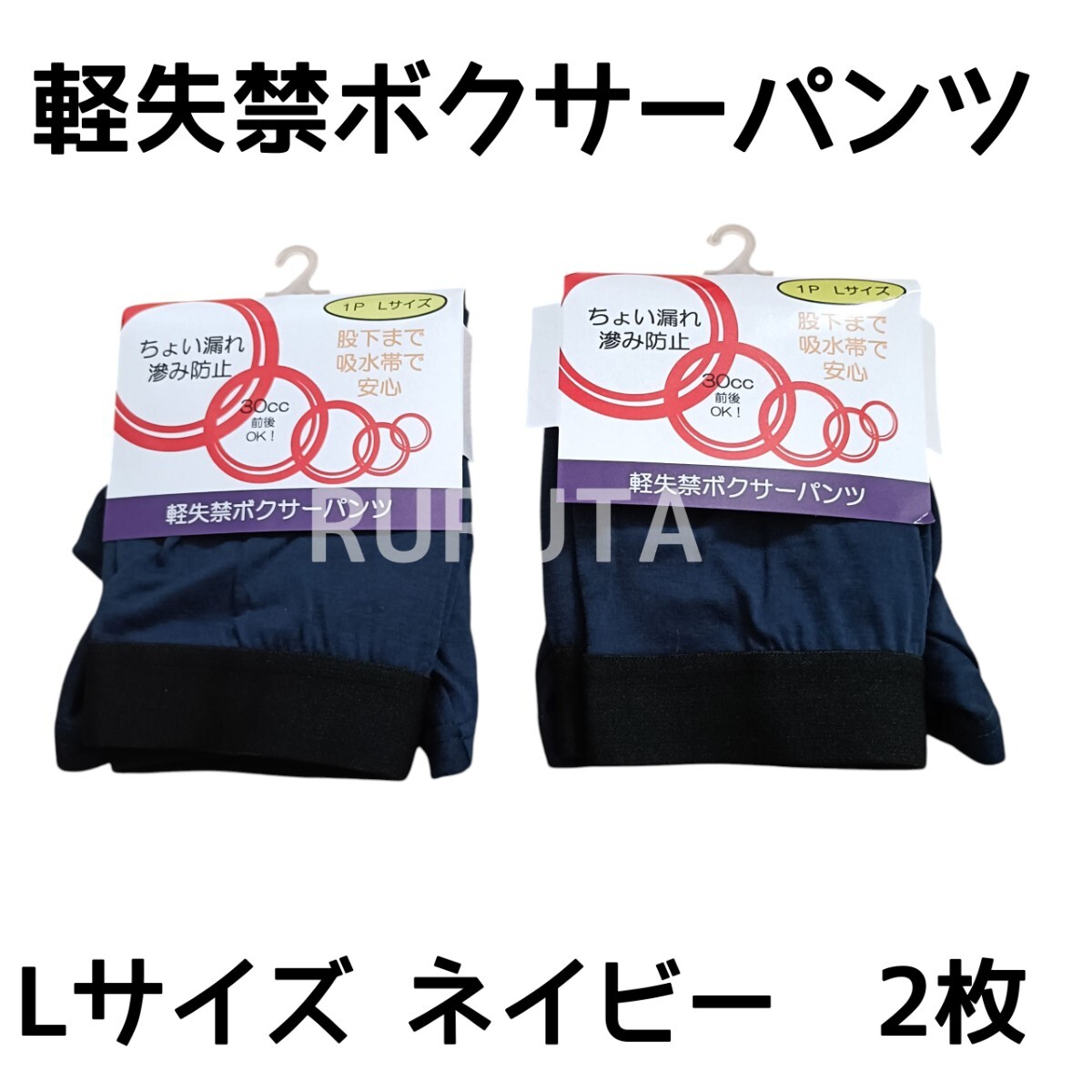 軽失禁ボクサーパンツ Lサイズ 2枚 ネイビー 30cc前後ok ちょい漏れ 滲み防止 メンズ 男性 紳士 介護