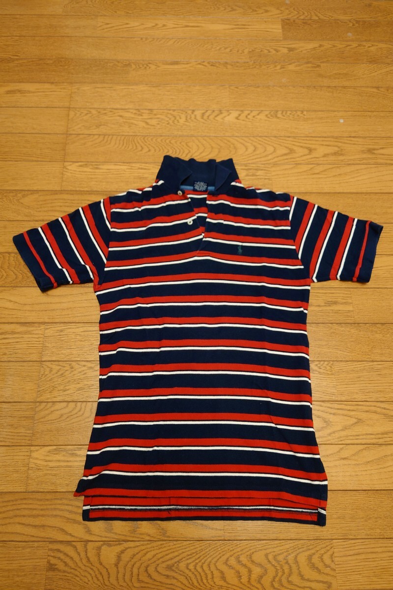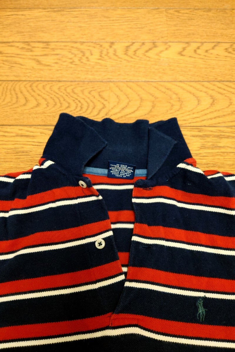 ポロ ラルフローレン ポロシャツ ネイビー 赤 ストライプ M 半袖 收藏