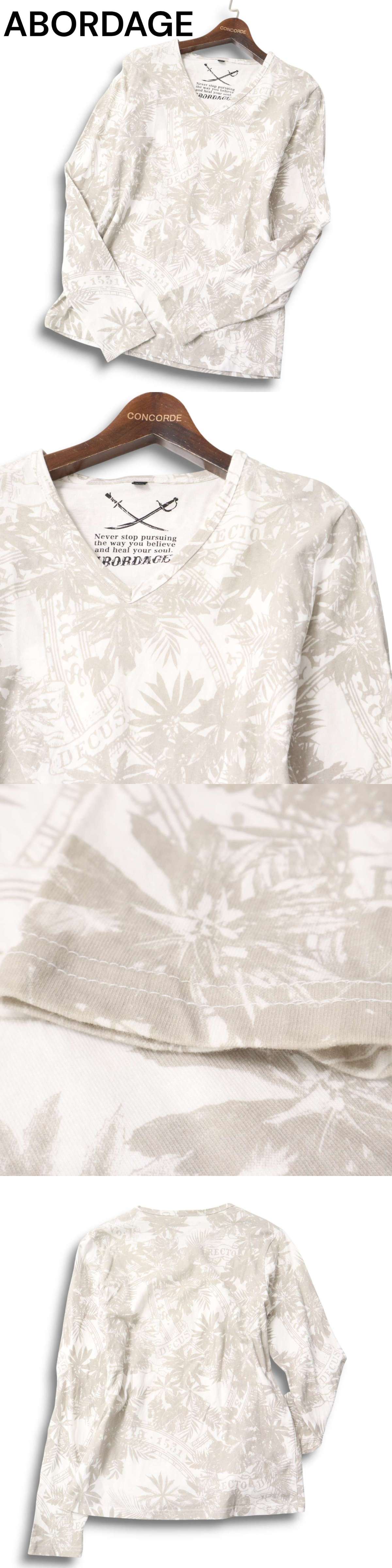 ABORDAGE アボルダージュ ヒロムタカハラ 通年★ リーフ 総柄 Vネック 長袖 カットソー Tシャツ Sz.46 メンズ 收藏