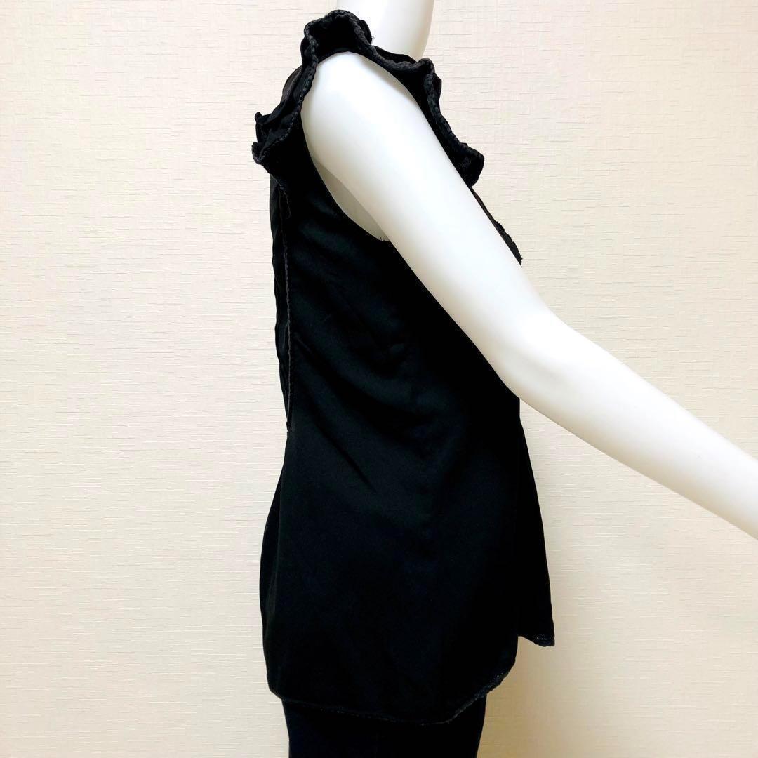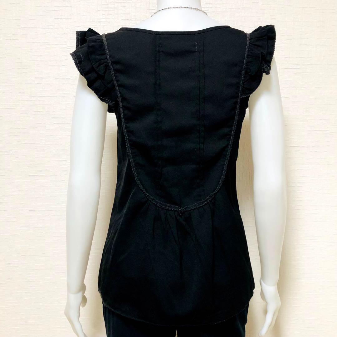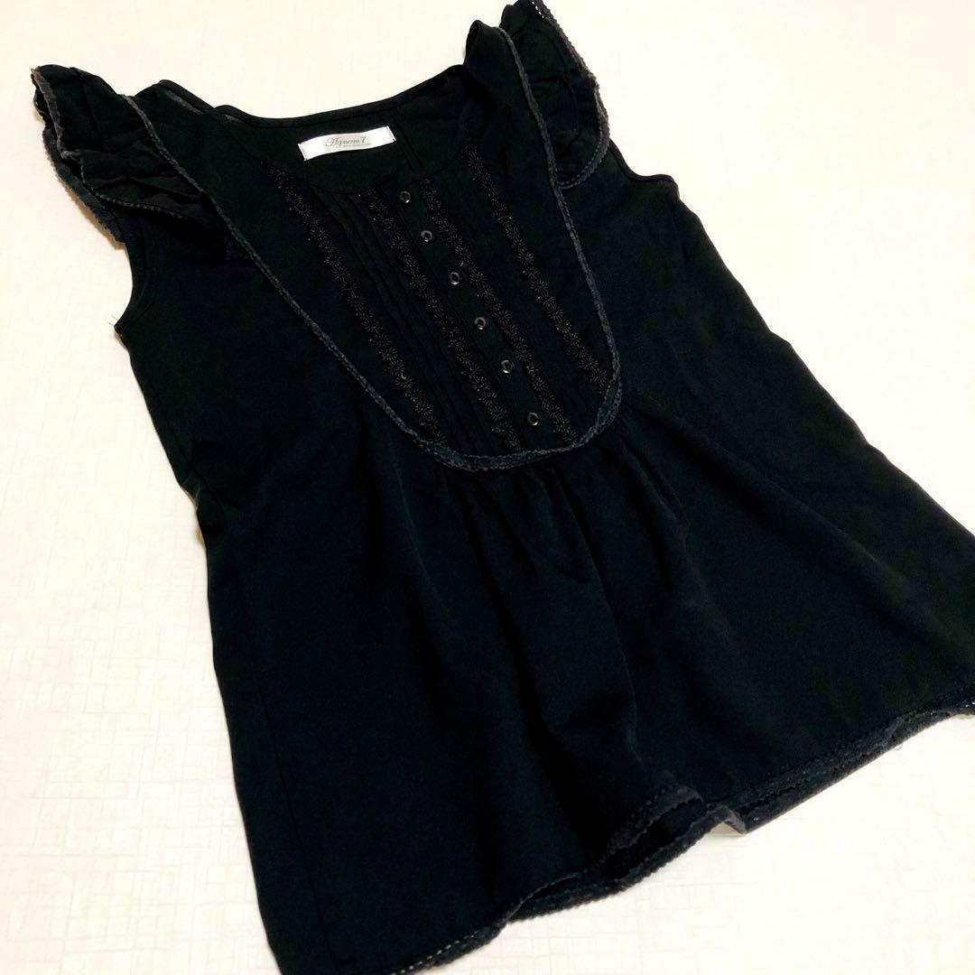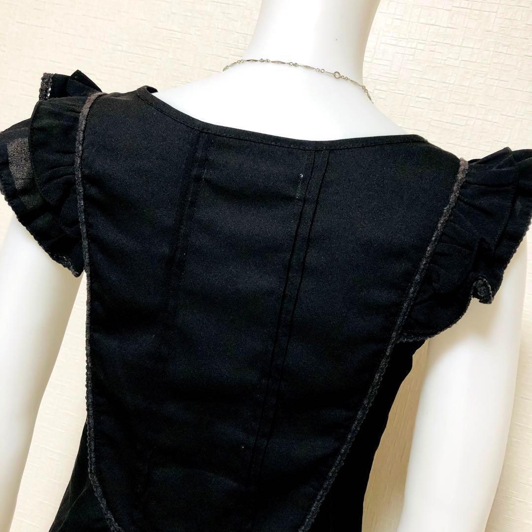 【美品】Agneau7 アニュセット ガーリー フロントタックレース袖 フリルプルオーバーブラウス フェミニン ピンタック ブラック 黒 フリー 收藏