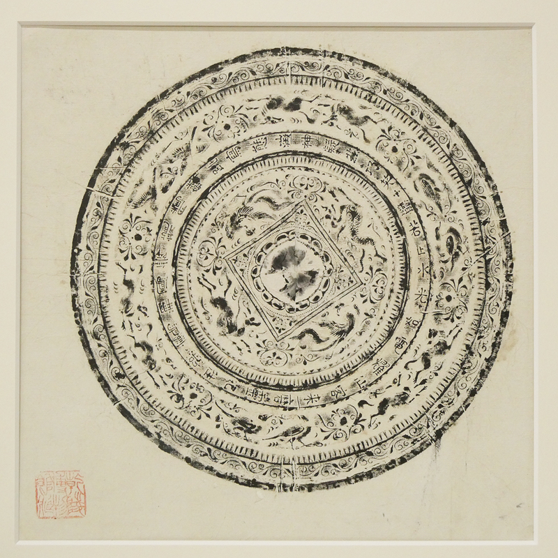 ♯ 中国美術 鑒若止水銅鏡 拓本 乾陵博物館藏落款 額装入り!! 中国銅鏡 青銅器 古鏡 唐鏡 唐代陵墓出土 紙本 拓影 考古学資料 稀少品 收藏