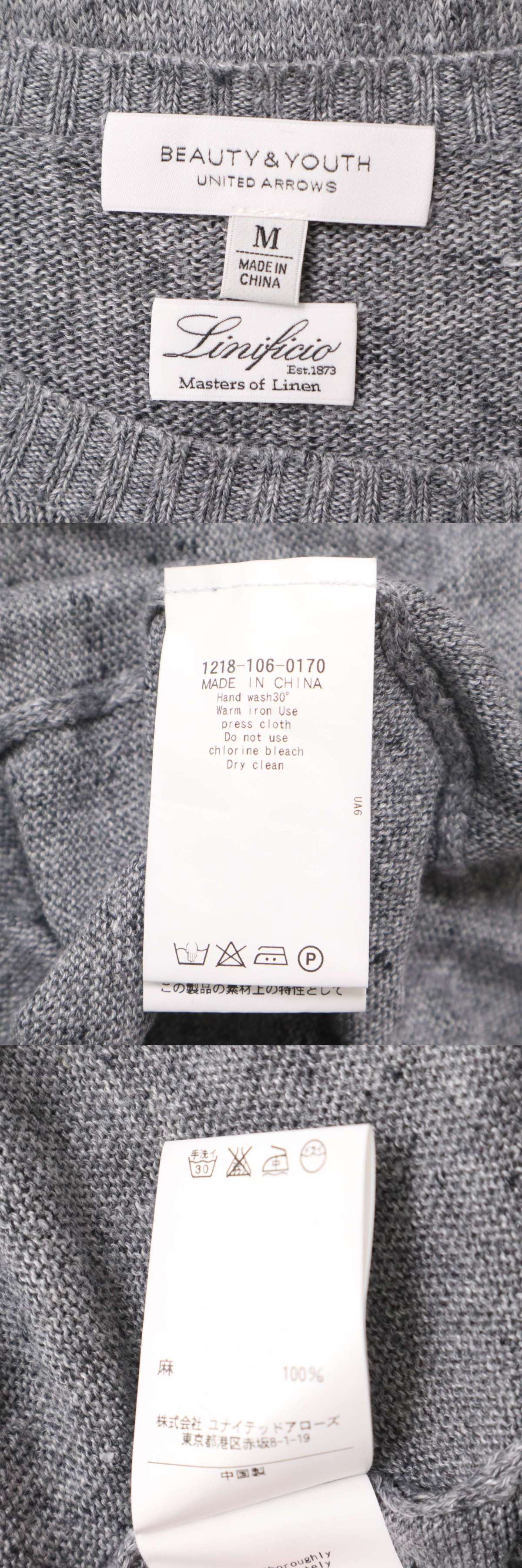 BEAUTY&YOUTH ユナイテッドアローズ 春夏 Linificio 麻★ リネン100% 半袖 サマー ニット Tシャツ セーター Sz.M メンズ 灰 收藏