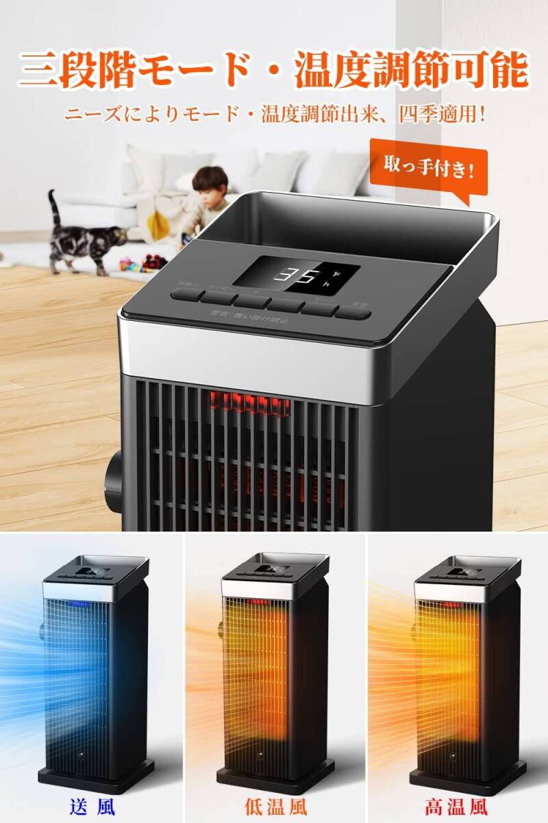 送風・弱・強の出力モードがあり、「冬場に速暖暖房、夏場に空気循環」を実現します。