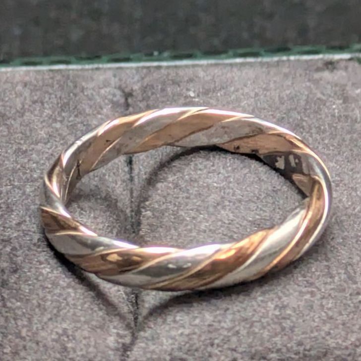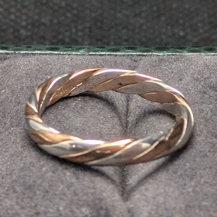 ヴィンテージ ツイストリング シルバー925 14K GF デュアルカラー バンドリング 13.5号 2g リング アクセサリー シルバー ジュエリー 指輪 收藏