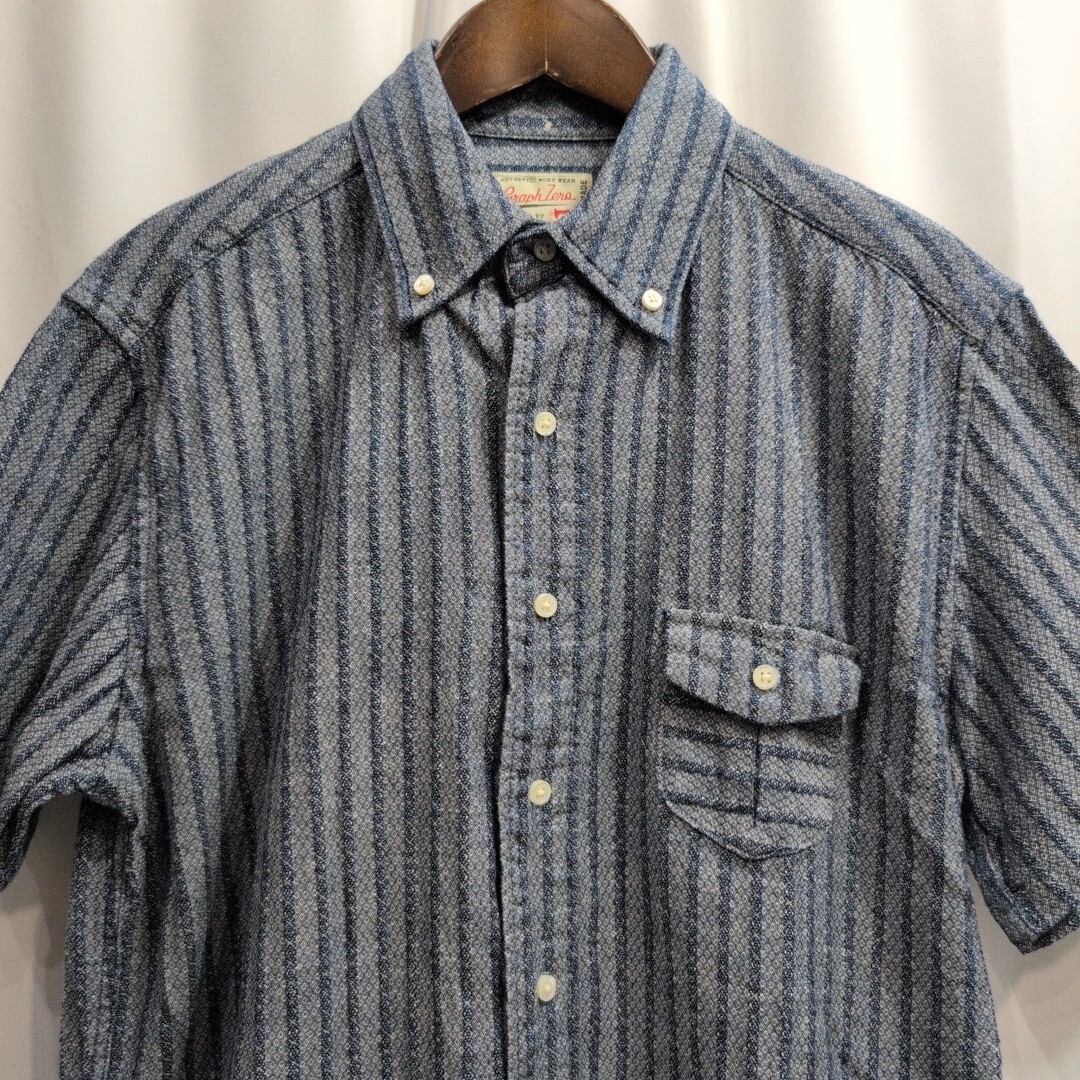 graphzero グラフゼロ コットン ストライプ 半袖シャツ M メンズ 日本製 ボタンダウン ワークシャツ/児島ジーンズ/桃太郎ジーンズ/サムライ 收藏