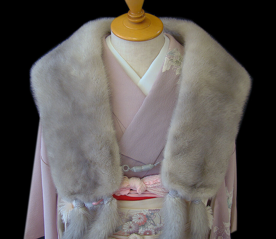 きものしらゆり アッシュグレイ色 ミンク 4疋 ショール 天然毛皮 S670 收藏