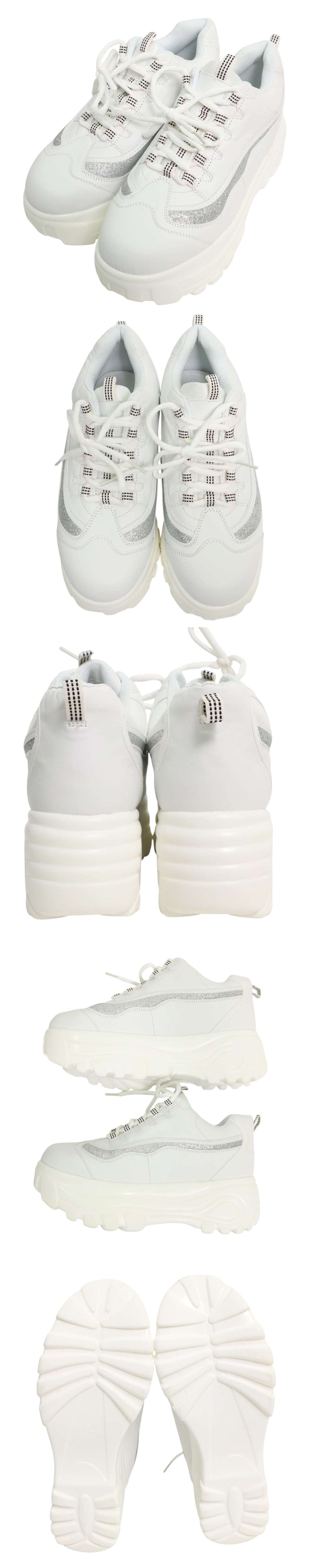 【美品】 EDGE エッジ 通年 ラメ★ 厚底 スニーカー チャンキーソール シューズ Sz.4L レディース 白 收藏