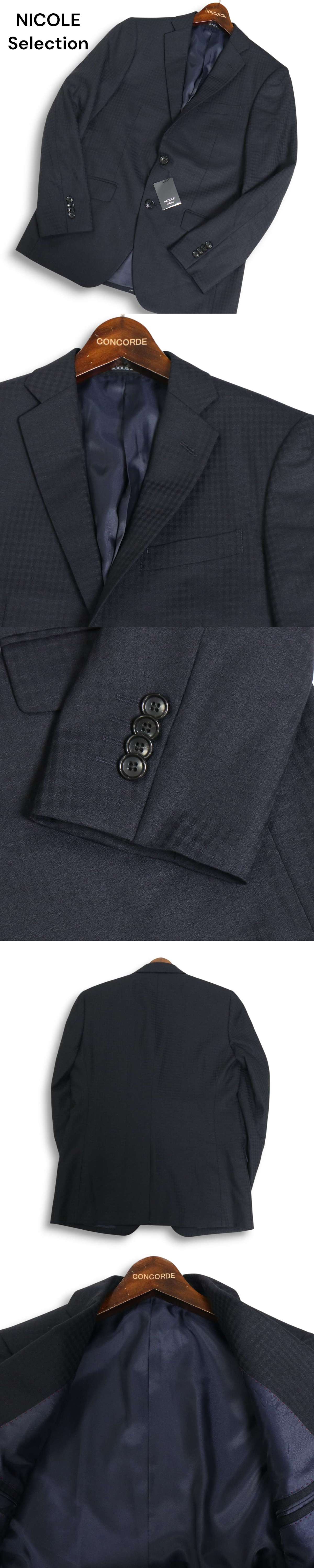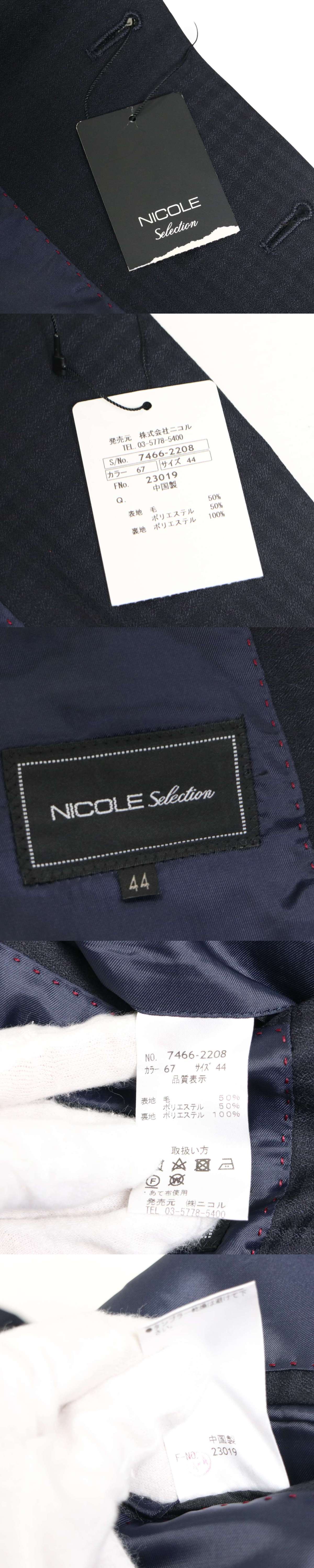 【新品 未使用】 NICOLE Selection ニコル セレクション 通年★ シャドーチェック テーラード ジャケット Sz.44 メンズ 紺 收藏