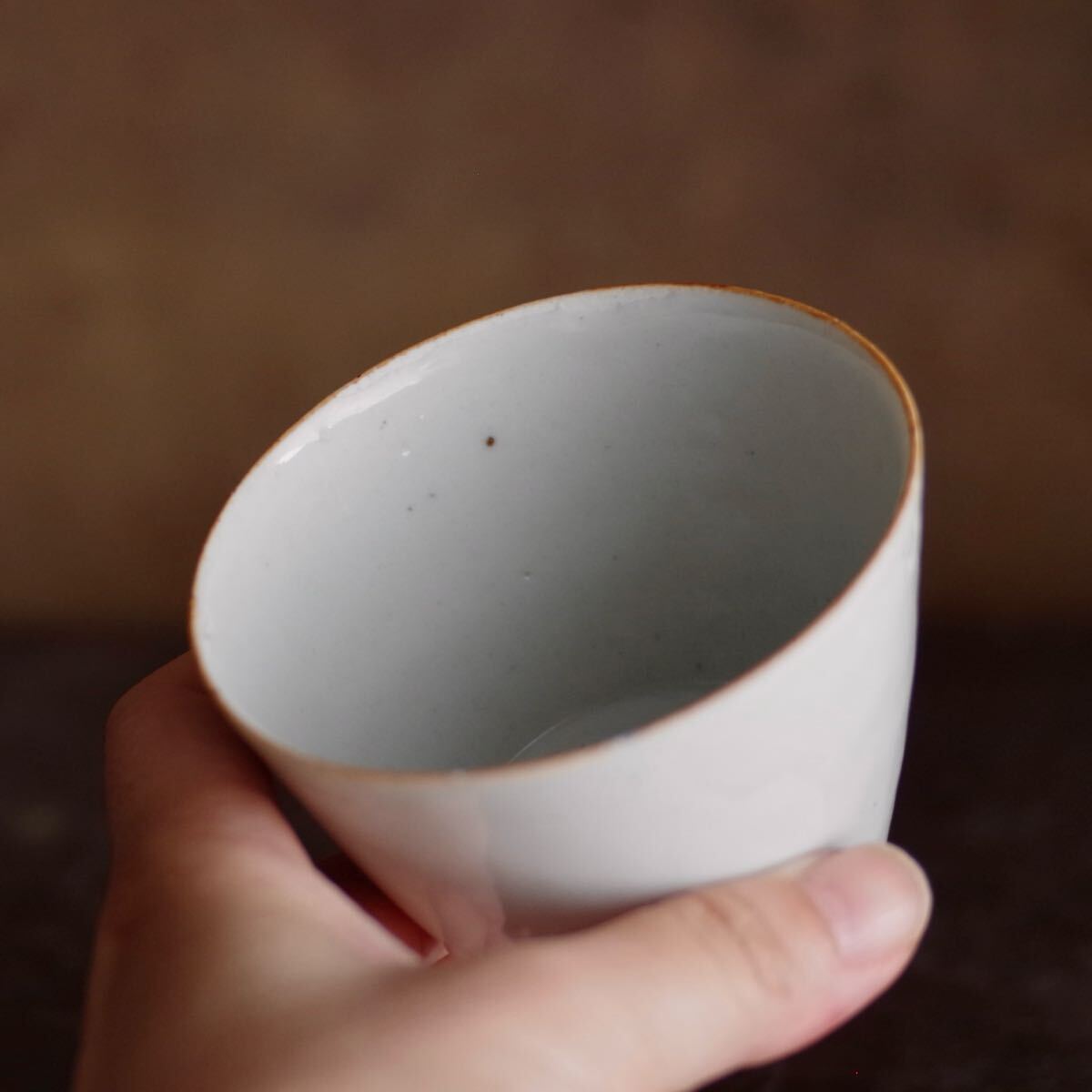 江戸中期ごろに作られた、柿右衛門の白磁蕎麦猪口でございます。柿右衛門白磁の中ではやや味わいを感じさせる作りで、すでに白磁の蕎麦猪口をお持ちの方にもまた異なる魅力をお楽しみいただける一品かと存じます。口縁部の釉剥ぎもアクセントとなっており、少し変わり種の趣きを感じさせます。薄造りでキレのある口元は酒器としても心地よく、小鉢や向付としても活躍いたします。