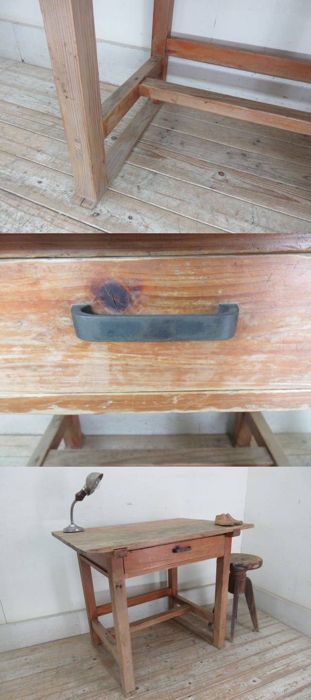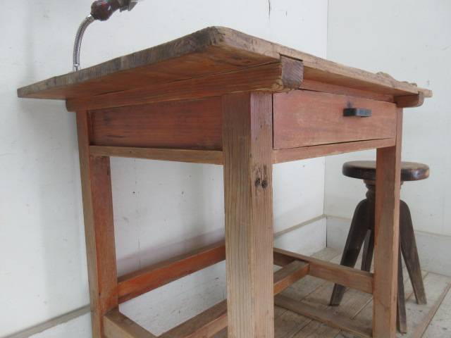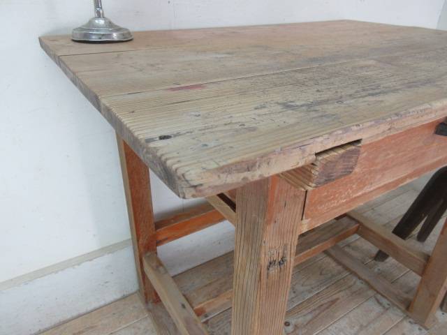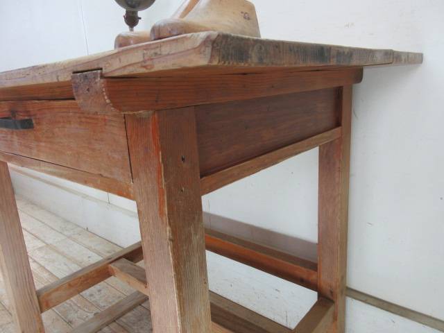 古い木味の1杯引き出し平机K815 アンティーク家具片袖机両袖机学習机デスク作業台カウンターテーブル店舗什器カフェ什器無垢材古家具 收藏