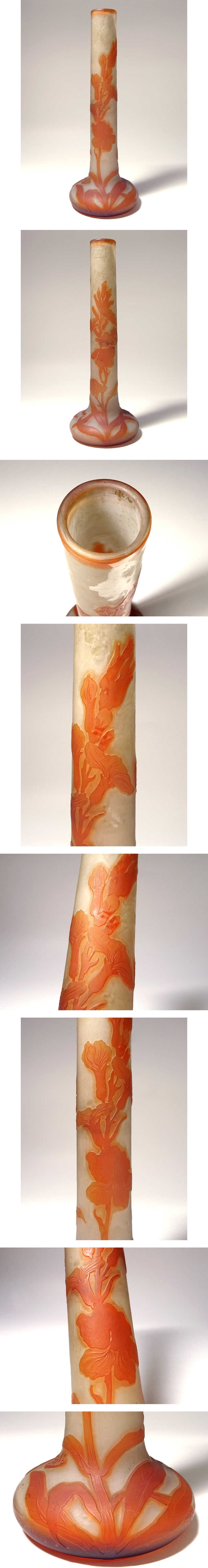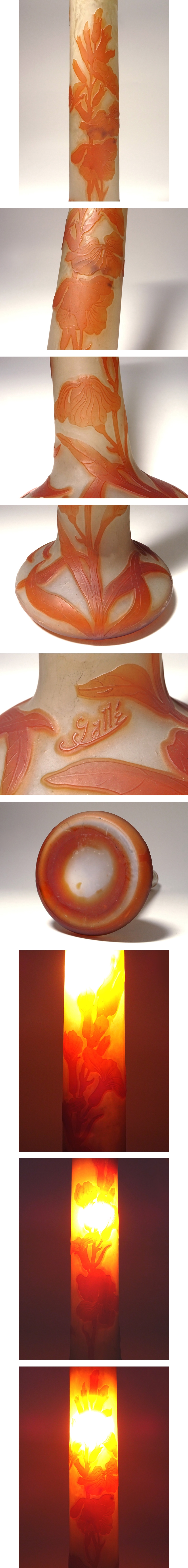 慶應◆20世紀初頭【Emile Galle エミール・ガレ】被せガラスにアシッドエッチング花文花瓶 高さ34cm 收藏