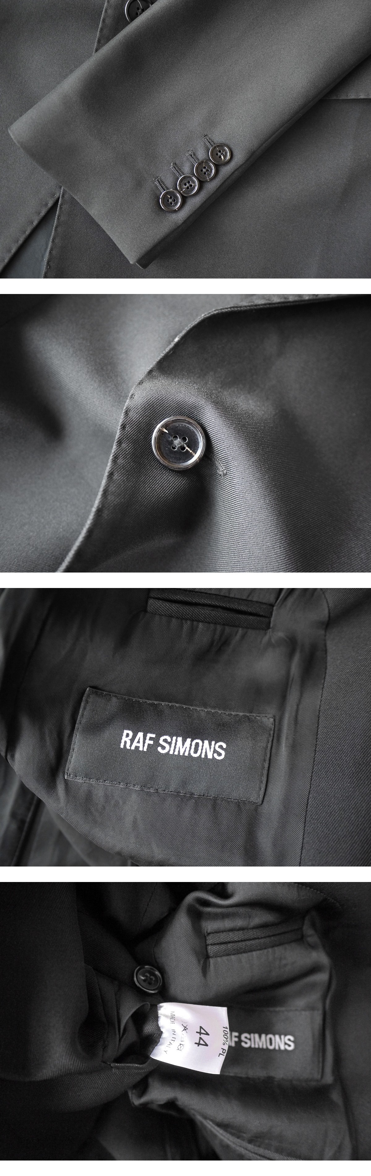 きめ細やかなウールは適度な厚みがあり、肌触りもよく、インナーの調節次第で長い期間着用できるラフシモンズらしい素材選びの光る逸品です。ラフシモンズ最盛期と言われるシーズンのモデルで、まさに一生もののコートとしてお勧めさせていただきます。この機会によろしくお願いいたします。