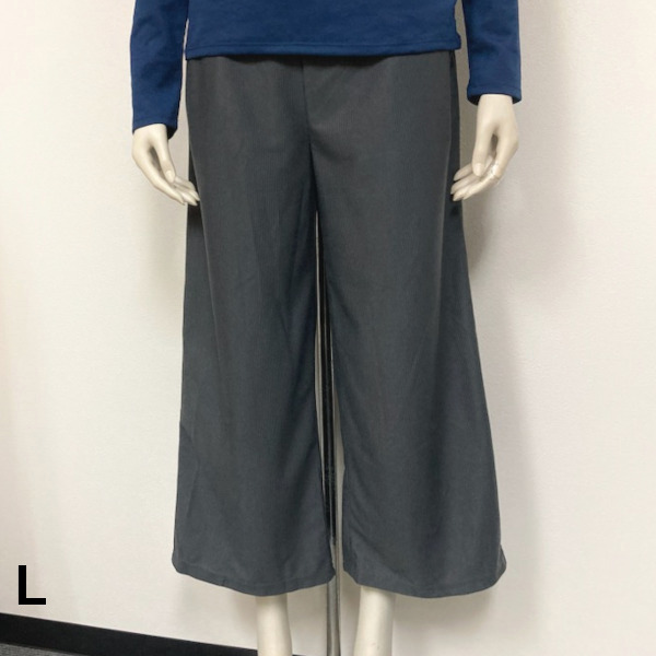 即決新品 レディース 脚長 薄手 コーディロイワイドパンツ L チャコール 送料無料 收藏