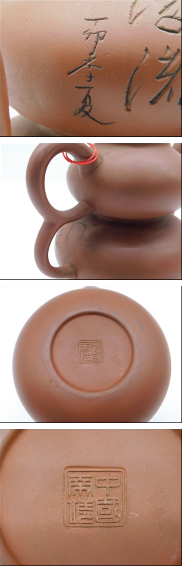 ★小0955 中国 朱泥 急須 在銘 瓢箪型 瓢箪 二層 漢詩刻 山水画 中国茶器 中国古玩 煎茶道具 茶道具 茶器 中国南靖? 落款 12510071 收藏