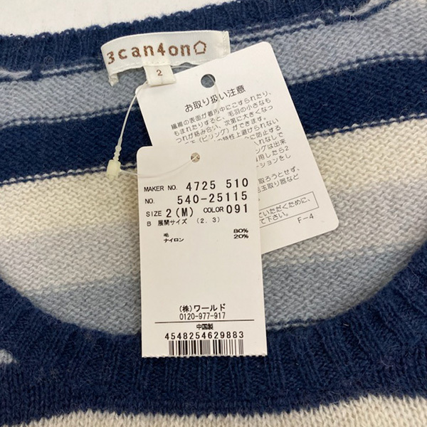 新品 正規品 ワールド 3can4on ニット プルオーバーです。| 出价者 | 信用 | 价格 | 时间 |