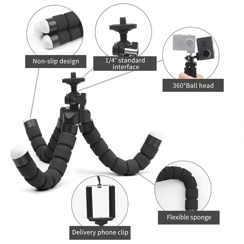 三脚の高さを自由に調整可能。脚は360°回転し、自由に曲げられるため、不安定な地面やさまざまな場所に設置できます。